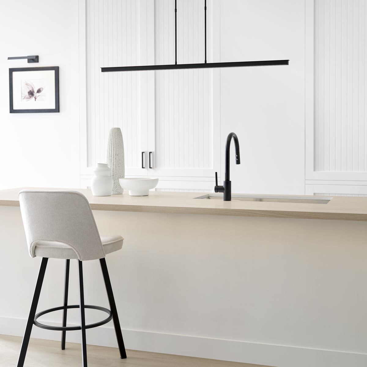 La structure épurée de la suspension linéaire Stagger 48 de Mick De Giulio pour Visual Comfort Modern offre un élément symétrique à une multitude d'espaces, créant davantage de texture visuelle et d'énergie. Sa taille généreuse et sa forme élancée offrent une ampleur et une profondeur suffisamment créatives pour éclairer délicatement tout en s'intégrant à l'architecture générale de l'espace. Les finitions modernes et la présence spectaculaire de l'éclairage LED subliment votre environnement avec symétrie et élégance, au-dessus d'éléments tels qu'une table à manger ou un îlot de cuisine.
