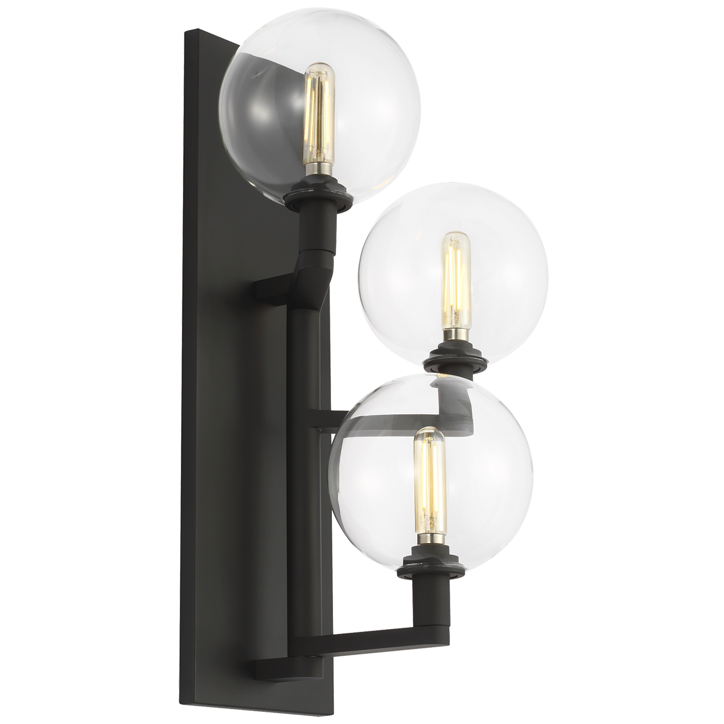 L'applique murale Gambit Triple LED de Visual Comfort Modern dégage une beauté indéniable et un style contemporain chaleureux grâce à son utilisation audacieuse de matériaux haut de gamme et à son ampoule LED d'inspiration rétro entièrement réglable. Disponible dans des finitions modernes, ce design contemporain au charme universel est proposé en deux tailles : la petite à 1 lumière et la modulable à 3 lumières, chacune dotée d'une silhouette unique. Les deux tailles offrent une convergence d'éléments contrastés, avec les lignes épurées de leur élégante quincaillerie en métal plaqué et les courbes douces de leurs globes en verre borosilicate, à la fois délicats et résistants. Associées au lustre Gambit assorti et aux différents lustres multi-ports Gambit, également de Visual Comfort Modern, ces appliques murales originales apporteront une touche chaleureuse à l'éclairage de votre salle à manger, de votre cuisine ou de votre salon.