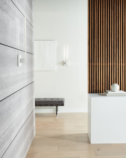L'applique murale Klee 30 de Sean Lavin pour Visual Comfort Modern présente un design minimaliste moderne aux lignes épurées et géométriques. Disponible dans des finitions modernes, elle incarne la définition même du design moderne et constitue une solution idéale pour les environnements contemporains. Complétez votre look avec la collection Klee complète, comprenant un lustre, une lampe de table/lampadaire et une applique murale plus petite.