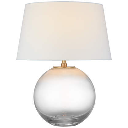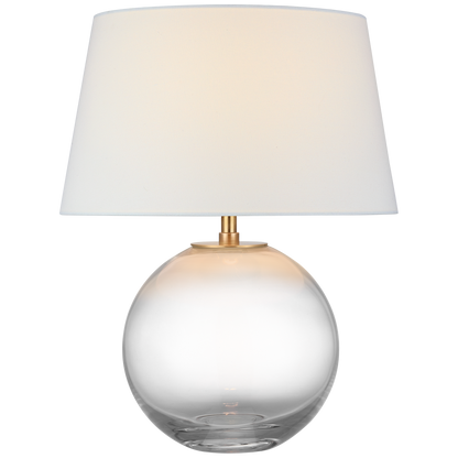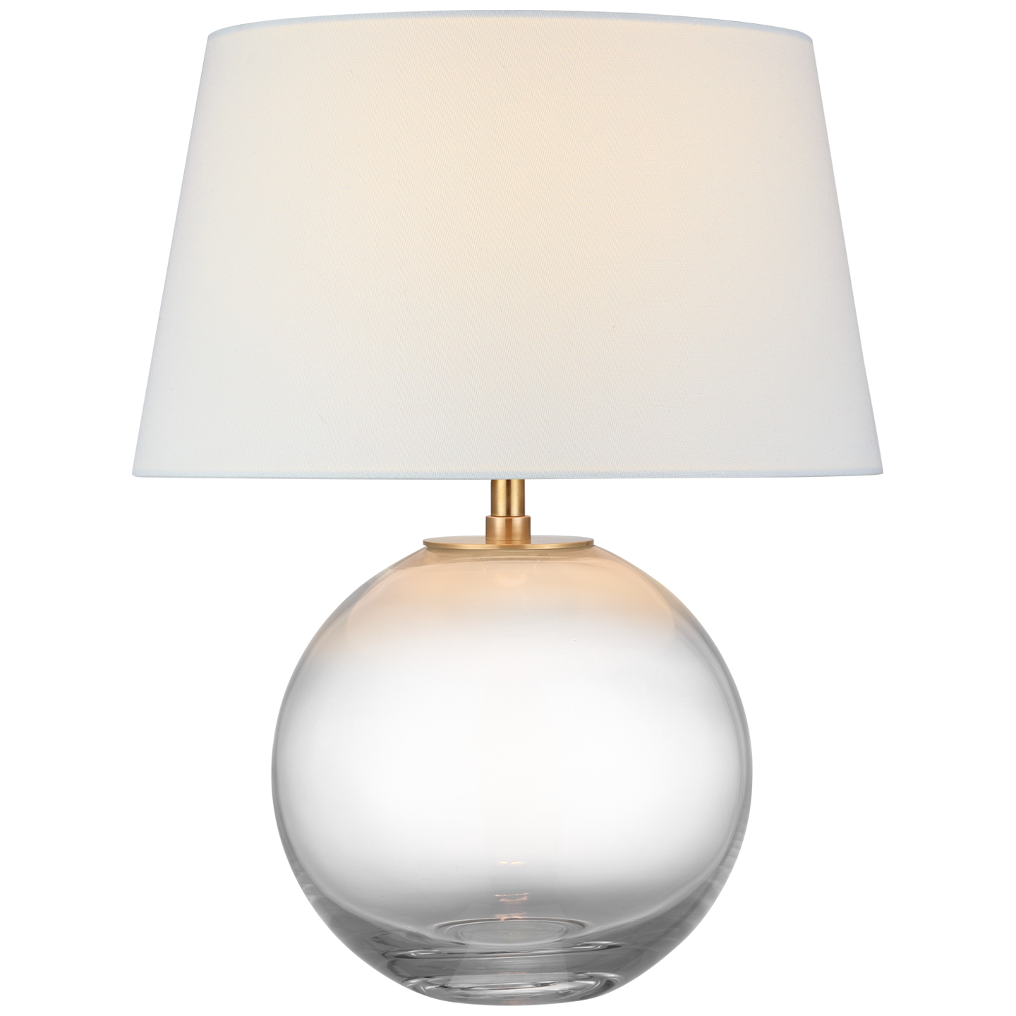 La lampe de table Masie de Chapman & Myers, issue de la collection « Organic », s'inspire des vases vintage en verre soufflé bouche de Murano. Dotée d'une base sphérique, petite ou moyenne, en verre épais soufflé à la main, transparent ou fumé, elle est surmontée d'un généreux abat-jour en lin. Qu'elle soit disposée par deux ou plusieurs, cette lampe élégante sublimera aussi bien les chambres que les salons.