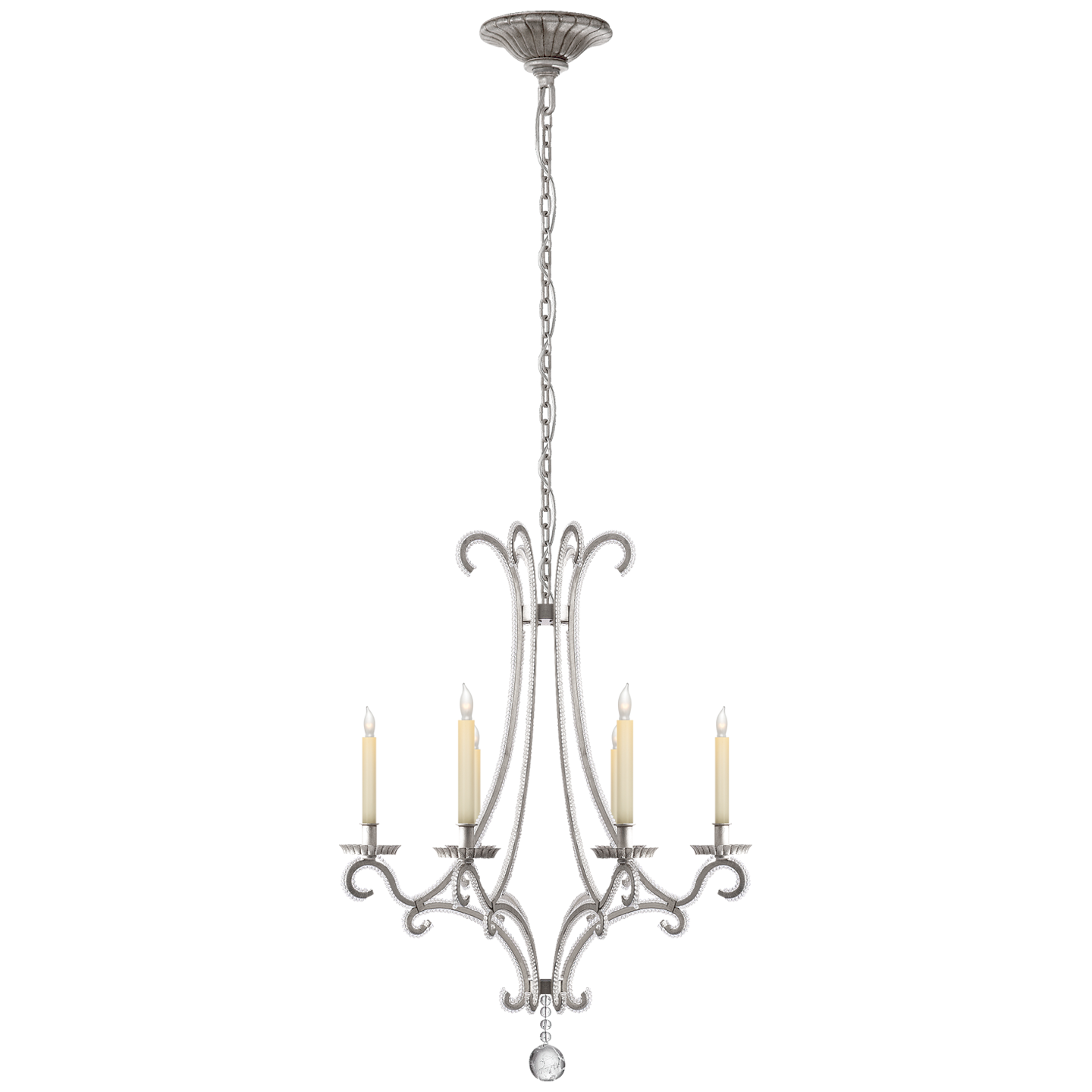 Le lustre Oslo de Chapman & Myers revisite l'élégance nord-européenne avec une touche de modernité. Ses courbes gracieuses en fer doré sont minutieusement ornées de perles de verre, ajoutant une touche de raffinement à ce lustre classique. Des détails ciselés, des bobèches festonnées et des lumières inspirées des bougies confèrent une touche de sophistication à tout intérieur.