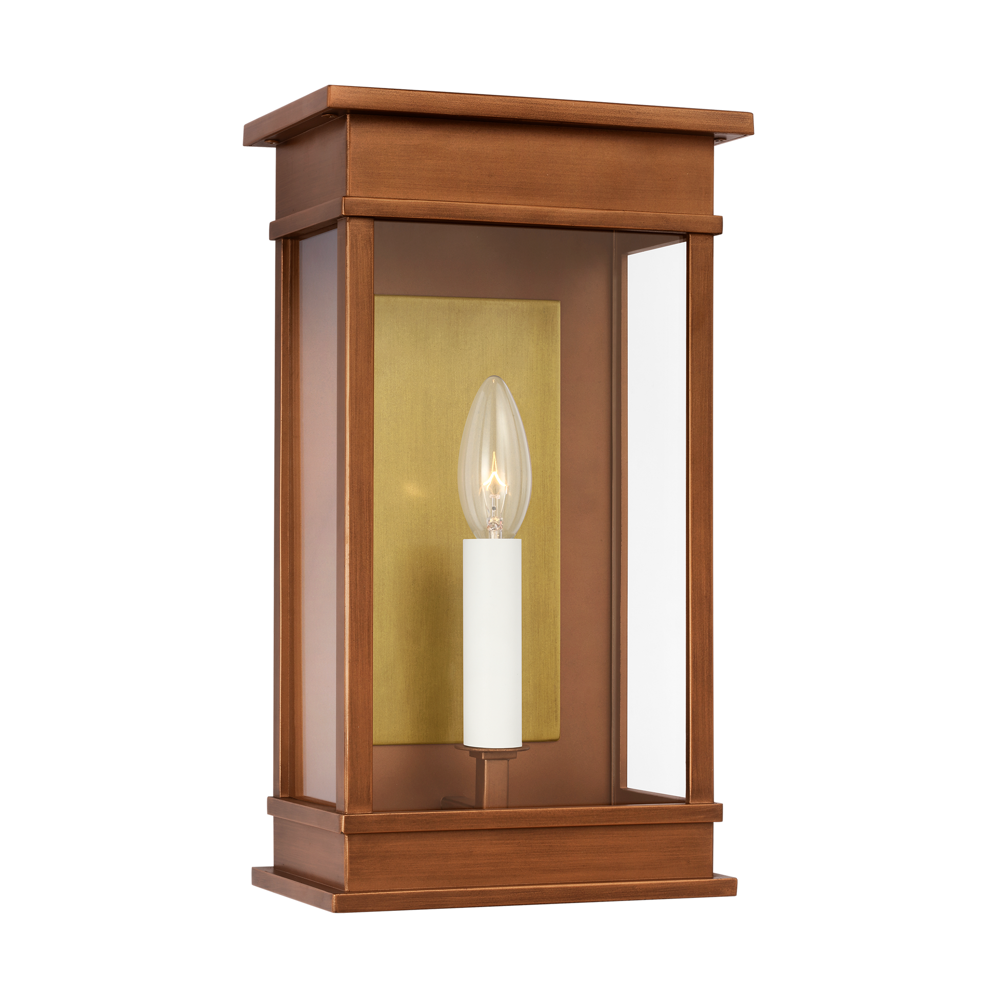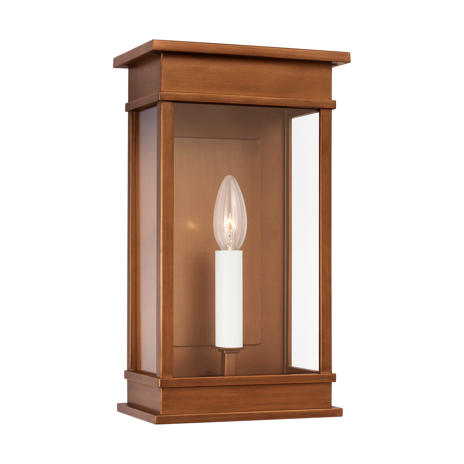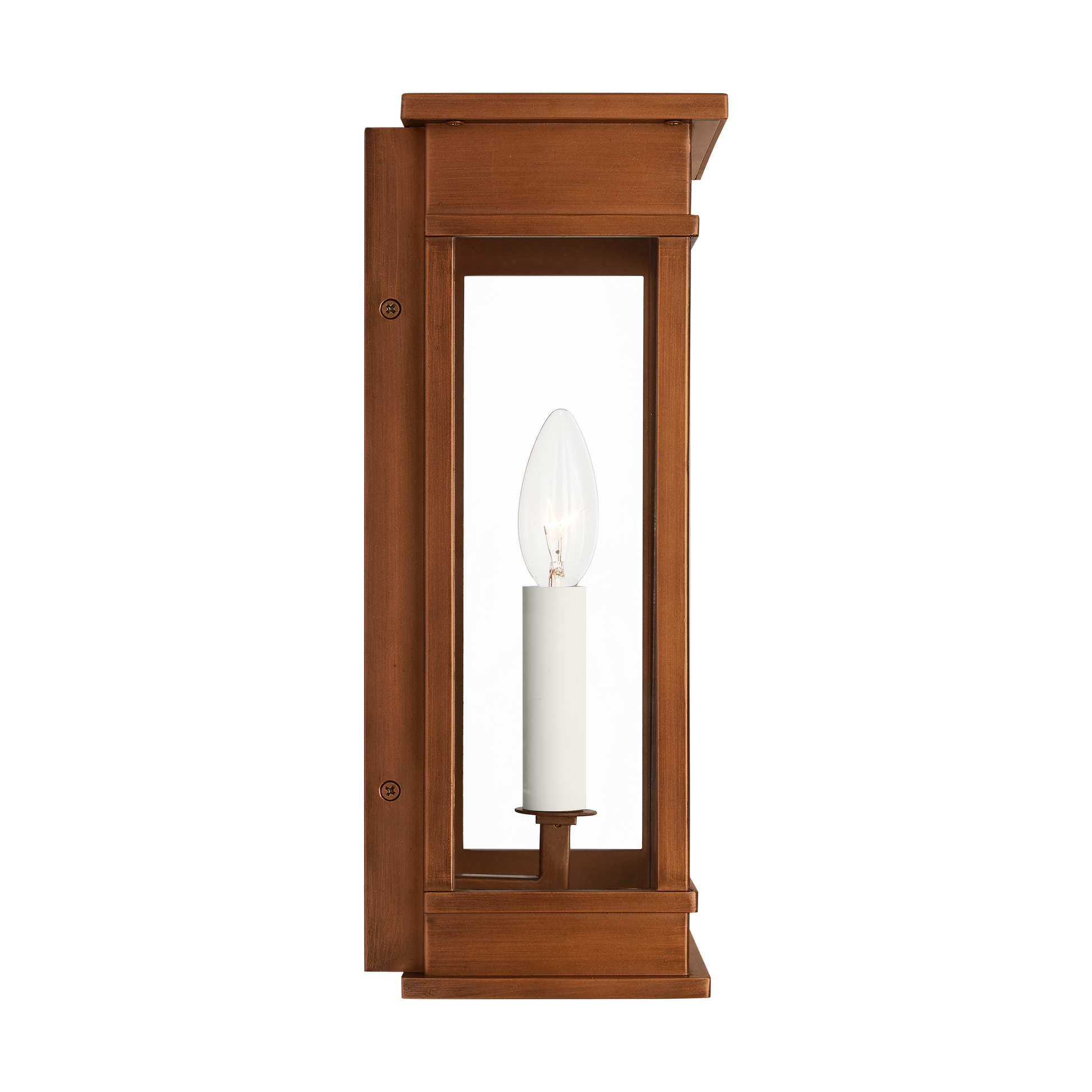 La série d'extérieur Cupertino de Chapman & Myers a été créée pour incarner un profil de lanterne rectangulaire classique et transitionnel. Au lieu d'ampoules à filament tubulaire, chaque lanterne est dotée d'un candélabre plus traditionnel avec des tubes de bougie crème pour parfaire son design. Le haut et le bas de chaque lanterne présentent des détails en gradins presque architecturaux.