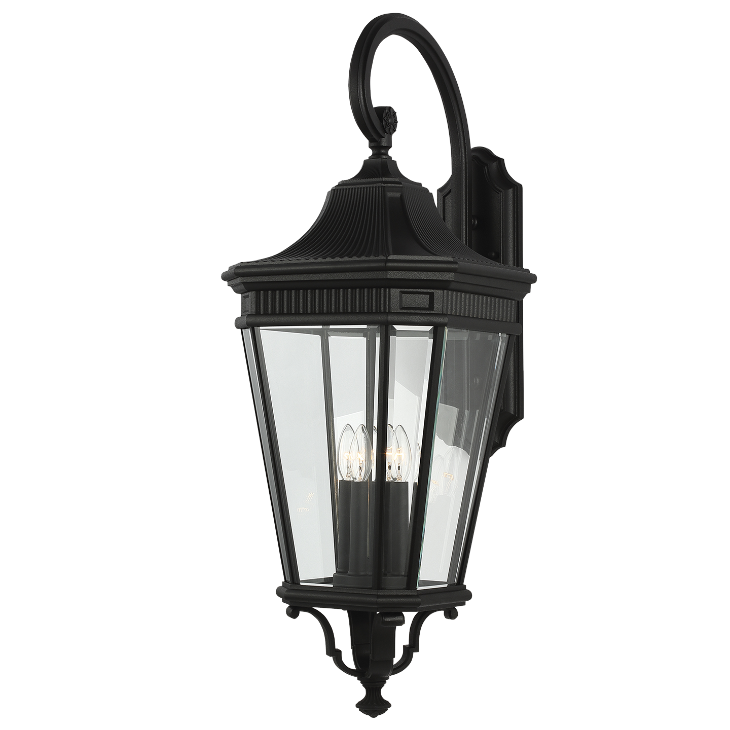 Le design traditionnel, inspiré des lanternes à gaz anciennes, de Cotswold Lane présente des moulures en dents de scie sur chaque panneau de verre biseauté. Le profil de Cotswold Lane est intemporel et élégant. Deux finitions et options de verre sont disponibles : cadre noir ou bronze grec avec verre biseauté transparent ou verre grainé transparent.