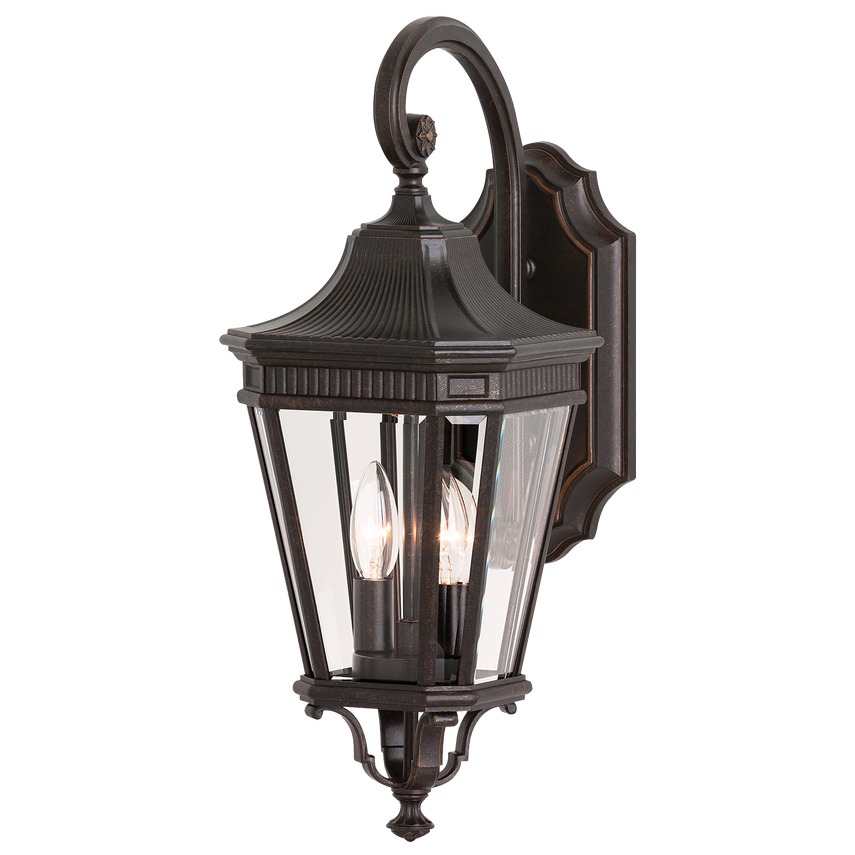 Le design traditionnel, inspiré des lanternes à gaz anciennes, de Cotswold Lane présente des moulures en dents de scie sur chaque panneau de verre biseauté. Le profil de Cotswold Lane est intemporel et élégant. Deux finitions et options de verre sont disponibles : cadre noir ou bronze grec avec verre biseauté transparent ou verre grainé transparent.