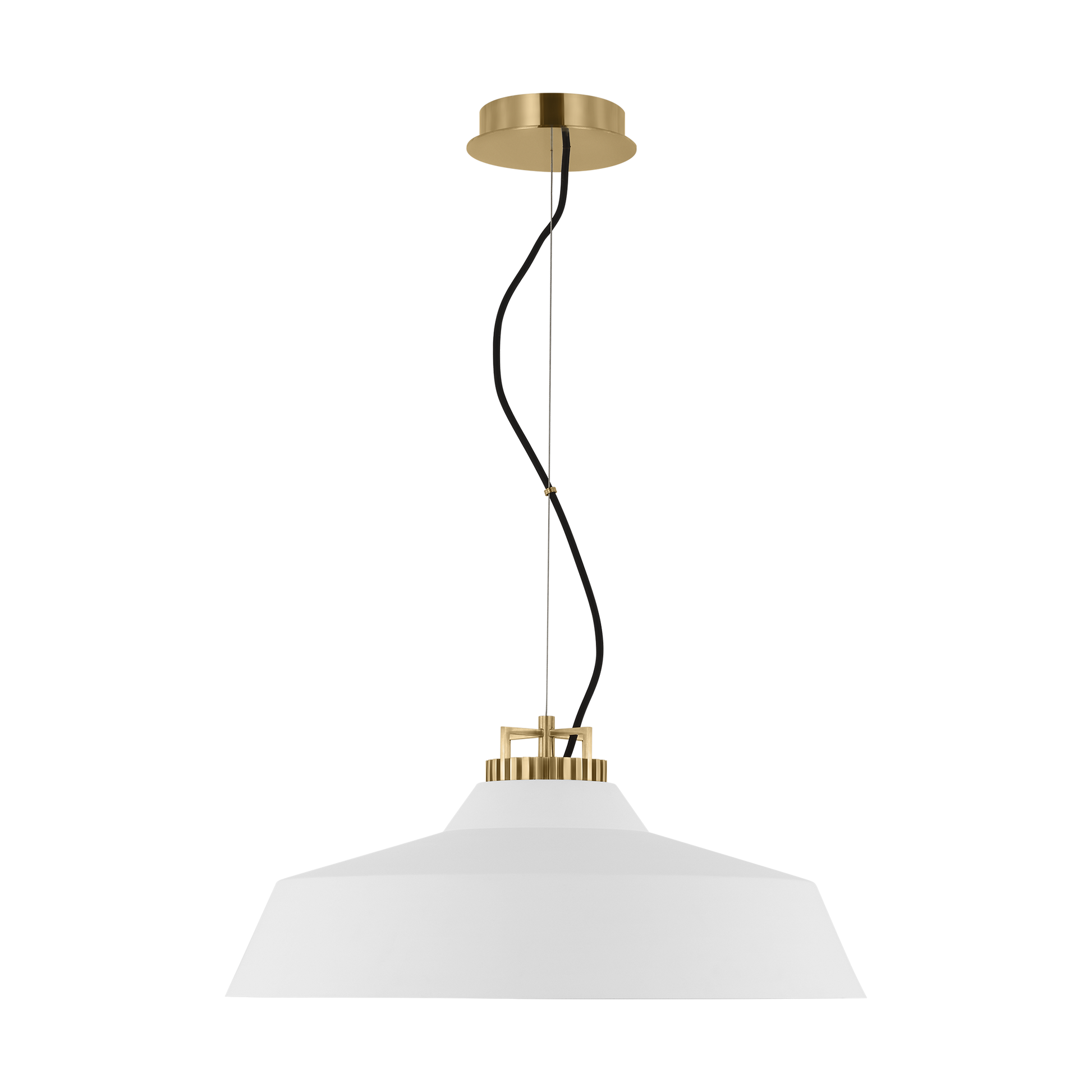 "Le pendentif court extra large Forge de Sean Lavin a été inspiré par l'ère industrielle mais modernisé avec un cordon paresseux et un boîtier et un auvent décoratifs en laiton synchronisés à la chaleur.