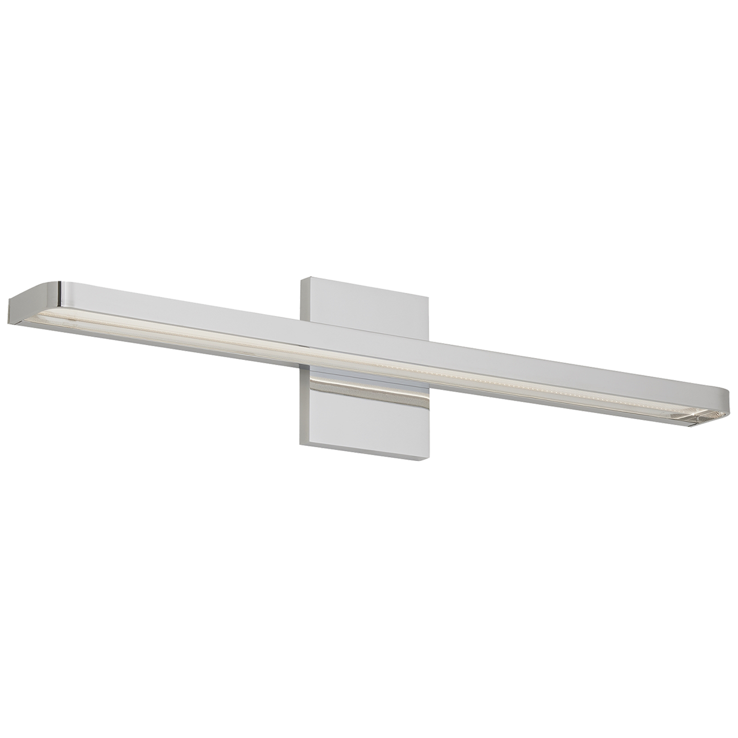 Designed with modern appeal, the Banda Bath Bar by Sean Lavin for Visual Comfort Modern provides a clean aesthetic with straight-lines and crisp edges enveloping integrated LEDs providing up and downlight. Designed at a popular length of 24 inches, Banda is perfect for vanity and bathroom lighting. Available in modern finishes. Lamping options are compatible with most dimmers.