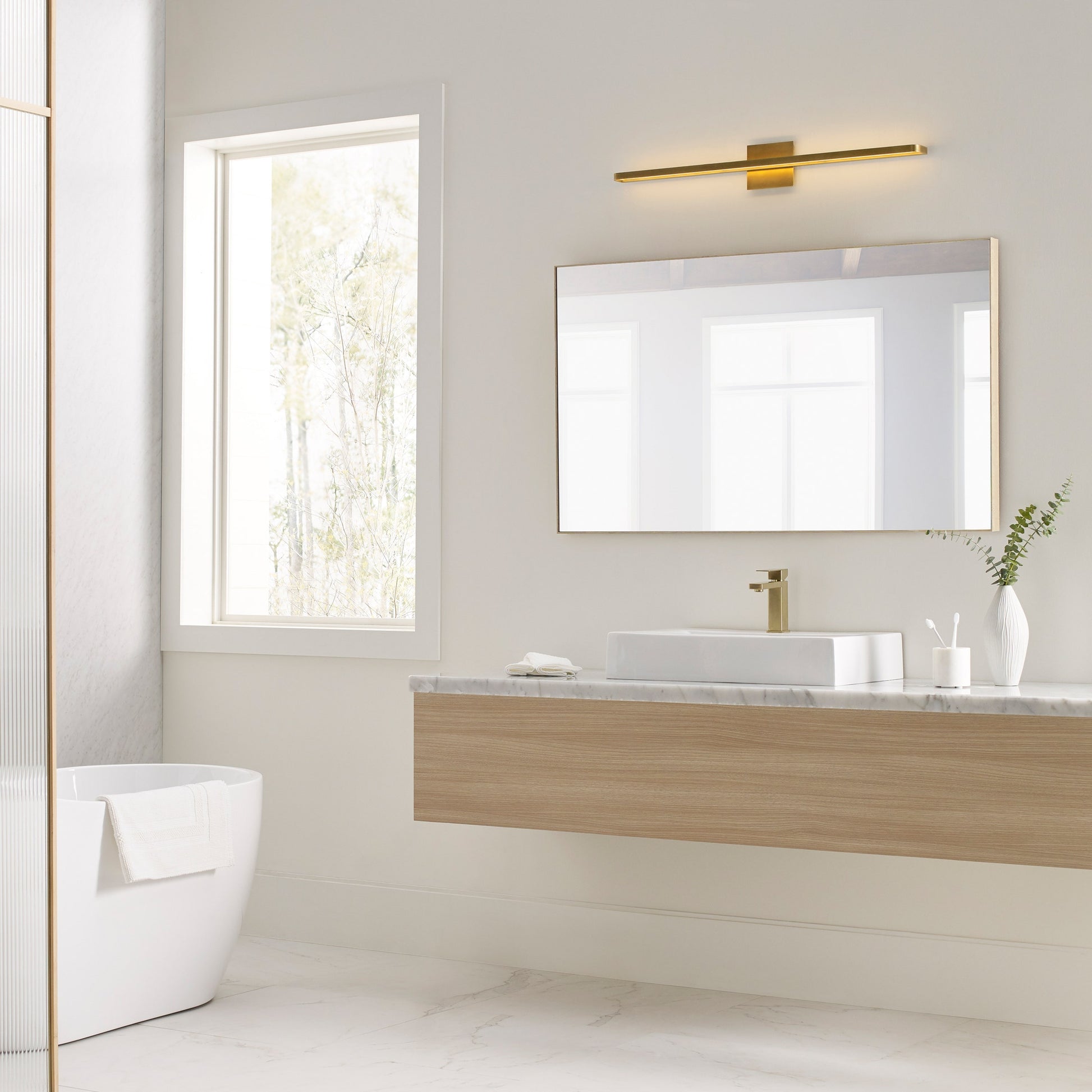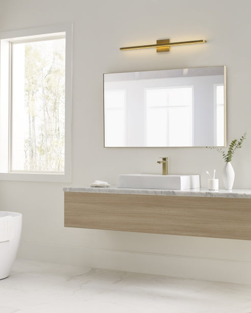 Designed with modern appeal, the Banda 36 Bath Bar by Sean Lavin for Visual Comfort Modern provides a clean aesthetic with straight-lines and crisp edges enveloping integrated LEDs providing up and downlight. Designed at a generous length of 36 inches, Banda is perfect for vanity and bathroom lighting. Available in modern finishes. Lamping options are compatible with most dimmers. Refer to Dimming Chart for more information.