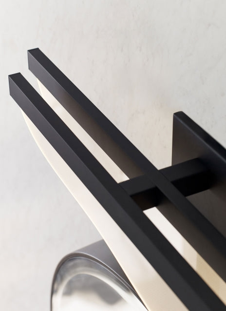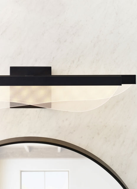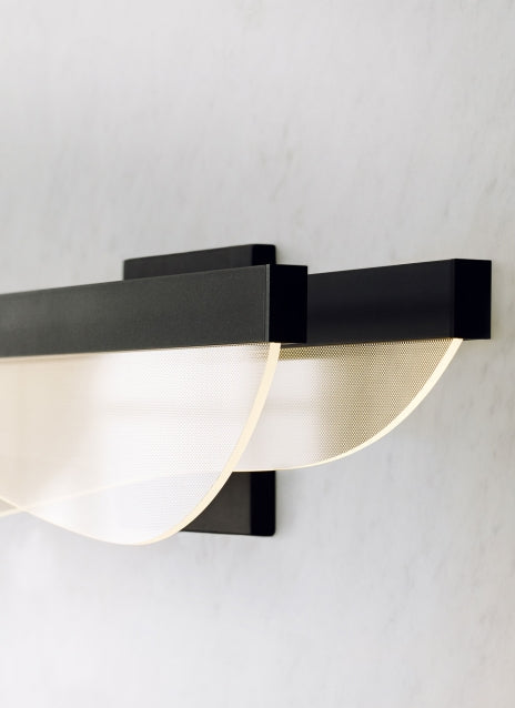 The Nyra 25 Bath Bar by Sean Lavin for Visual Comfort Modern features beautifully layered waves of LED panels truly reflecting the essence of modern LED art. Available in modern finishes. Nyra features two beautifully suspended acrylic blades, making it a statement piece as each panel emits a generous amount of illumination with light guide technology.