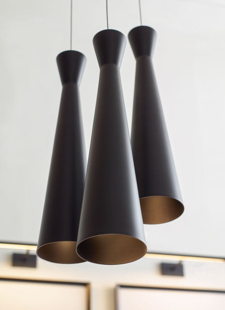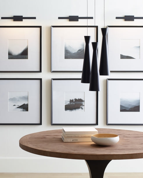 The Windsor pendant light from Visual Comfort Modern exudes sleek contemporary styling. The duel-tapered, elongated silhouette of the shade is inspired by mid-century modern design creating an alluring sense of visual dimension. The Windsor is available in Available in modern finishes. Scaling at 18" long and 4.5" in diameter the Windsor is ideal for task lighting applications such as kitchen island task lighting, home office lighting and bedroom lighting flaking end tables. This pendant is available in low-voltage allowing for an even wider range of mounting options. Available lamping options include energy efficient, fully-dimmable LED or no-lamp, leaving you the option to light this fixture with your preferred lamping.
