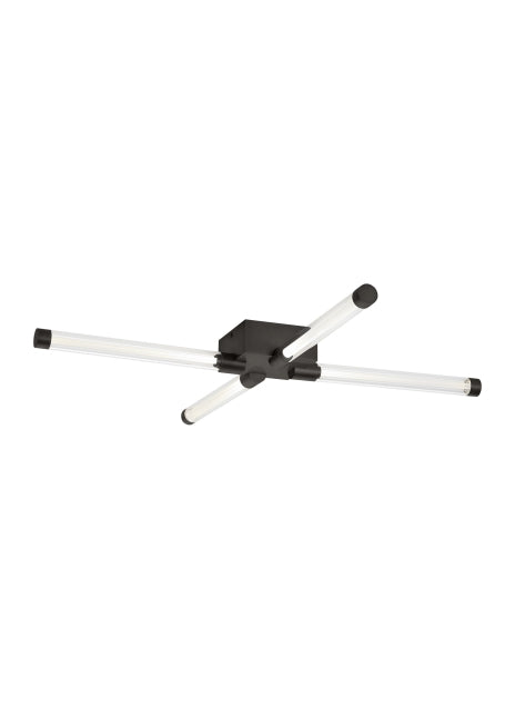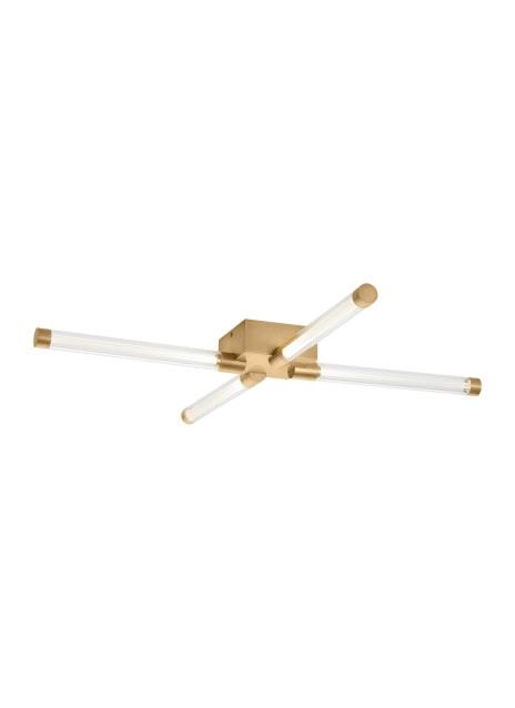 The Phobos Wide Flush Mount by Kelly Wearstler for Visual Comfort Modern exceptionally contemplates clean intersecting forms and the purity of tubular light in a modern dialogue of geometries. Radial and rectilinear landscapes create a sculptural world for customized LED lamping that features a central light-guide channeling for a fully diffused glow.