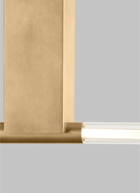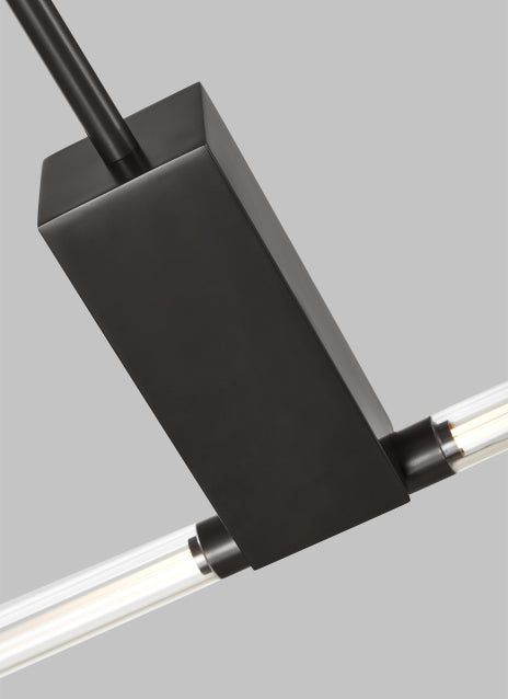 The Phobos Large Linear by Kelly Wearstler for Visual Comfort Modern exceptionally contemplates clean intersecting forms and the purity of tubular light in a modern dialogue of geometries. Radial and rectilinear landscapes create a sculptural world for customized LED lamping that features a central light-guide channeling for a fully diffused glow.
