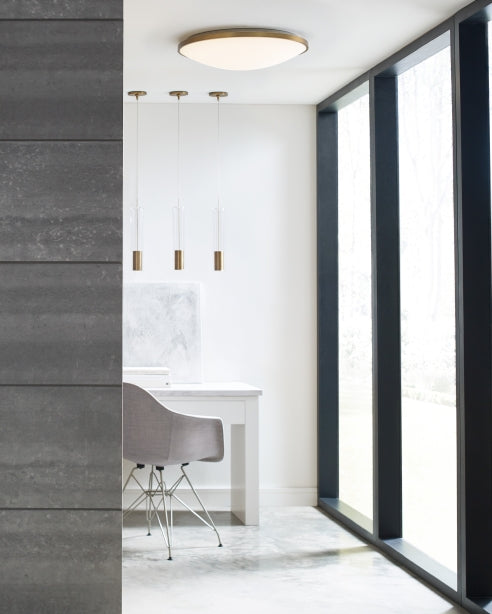 The Captra pendant light by Sean Lavin for Visual Comfort Modern features a meticulously detailed metal spinning that outlines the fixture’s light engine and is captured inside a clear casing to create a strikingly contemporary cylindrical pendant. Available in modern on-trend finishes. Scaling at 14" in length and 3" in width the Captra is ideal for kitchen island task lighting, dining lighting and hallway lighting. Combine the Captra with any of our multiport canopies to create a customized chandelier that is specifically designed to your unique space. Your choice of energy efficient LED lamping ships with the Captra to save you time and money. All lamping options are fully dimmable to create the desired ambiance in your special space.