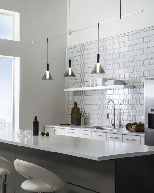 The Mezz pendant light by Sean Lavin is simply handsome featuring a sleek modern canonical shape and tipped sabre. At its core sits a cylindrical acrylic diffuser, providing a glare-free lighting experience in any space. Modest in size the Mezz scales at 7” in height and 3.5” in width making it ideal for kitchen island task lighting, bedroom lighting flanking two end tables or hallways. Available in multiple on-trend color options and sleek finishes. A high powered integrated LED lamp provides ample amounts of light onto surfaces below. The Mezz is fully dimmable to create the desired ambiance in your unique space.