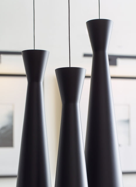 The Windsor pendant light from Visual Comfort Modern exudes sleek contemporary styling. The duel-tapered, elongated silhouette of the shade is inspired by mid-century modern design creating an alluring sense of visual dimension. The Windsor is available in Available in modern finishes. Scaling at 18" long and 4.5" in diameter the Windsor is ideal for task lighting applications such as kitchen island task lighting, home office lighting and bedroom lighting flaking end tables. This pendant is available in low-voltage allowing for an even wider range of mounting options. Available lamping options include energy efficient, fully-dimmable LED or no-lamp, leaving you the option to light this fixture with your preferred lamping.