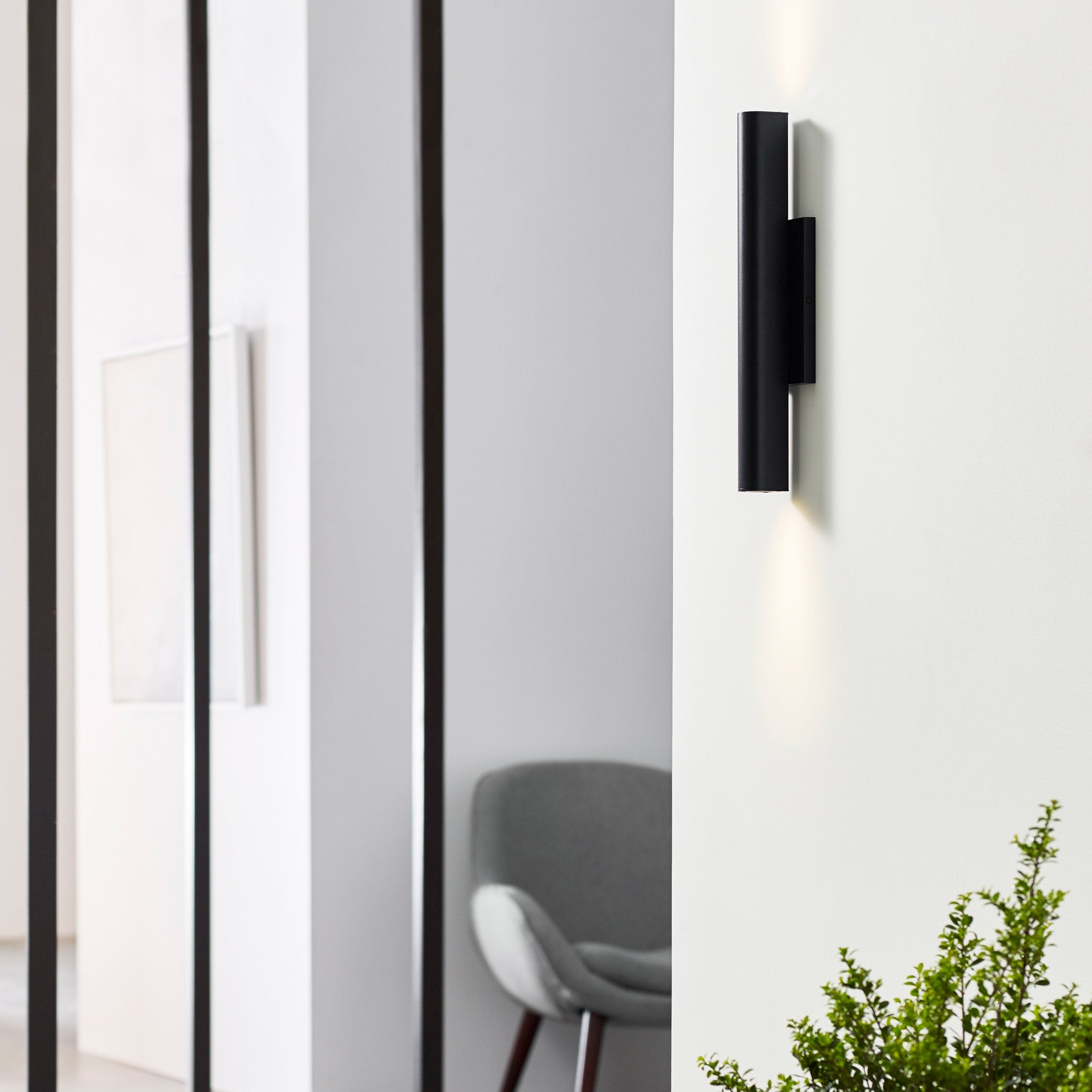Strikingly elegant in its simplicity, the Chara by Sean Lavin for Visual Comfort Modern is a tubular wall sconce design that creates a modern industrial look. Chara produces abundant up and down lighting for indoor or outdoor illumination. Available in multiple sizes and comes with a modern Black finish.