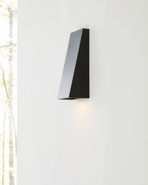 The Pitch 12 Outdoor Wall Sconce by Sean Lavin for Visual Comfort Modern features an architectural profile reminiscent of beautifully classic roof lines and delivers significant light output. Suitable for both indoor and outdoor applications, Pitch features a die-cast metal body housing powerful LEDs that create visual appeal as light cascades from an angular tier. Mounts for downlight only. Available in modern finishes.