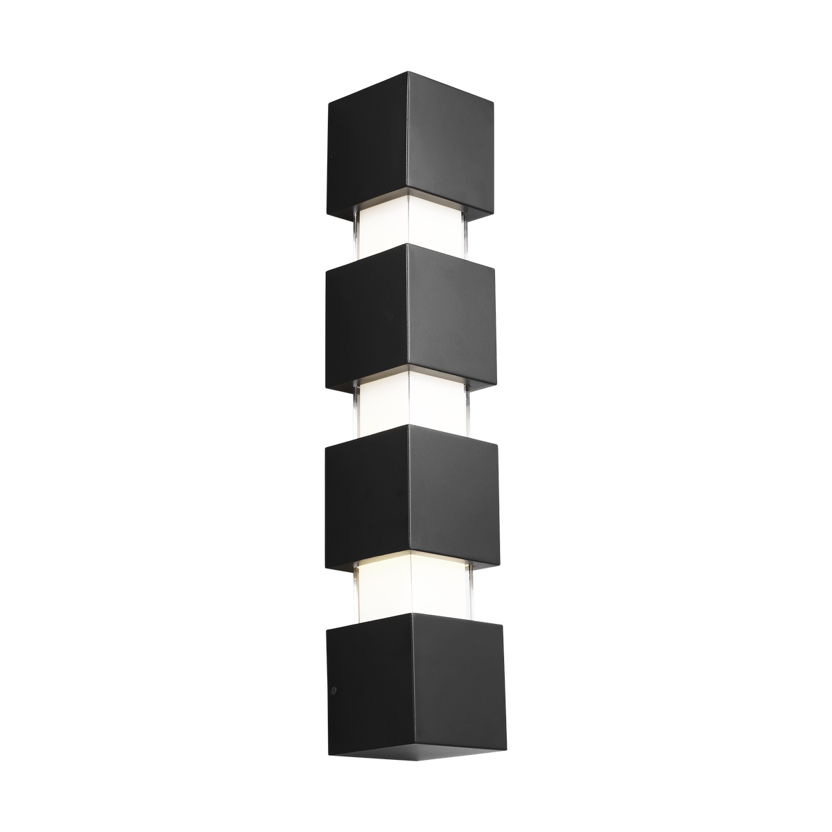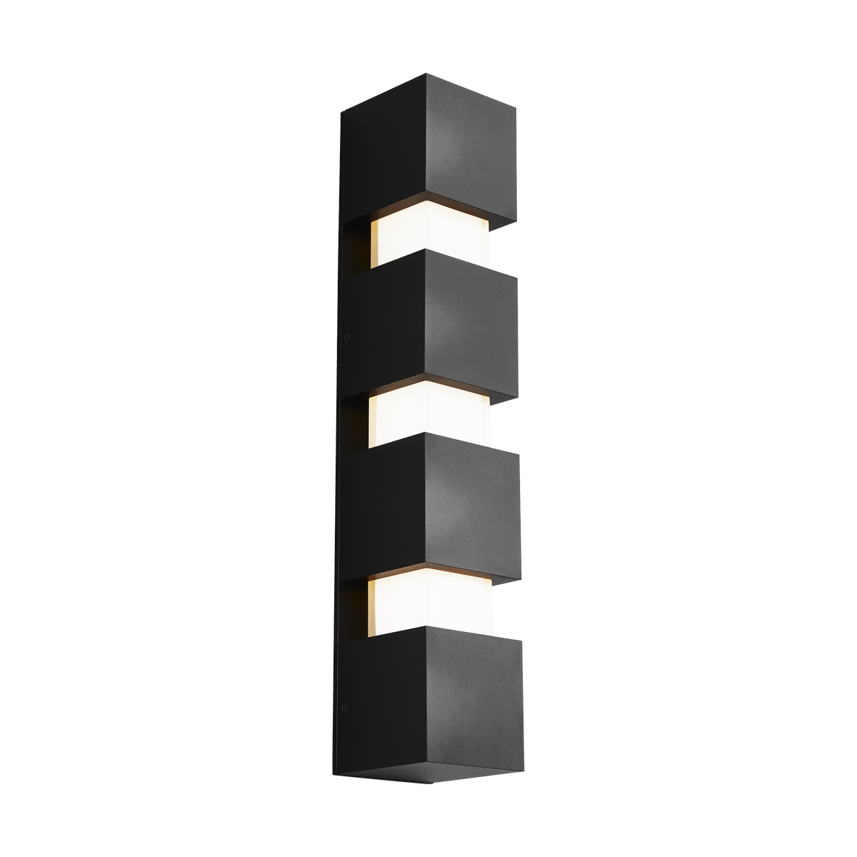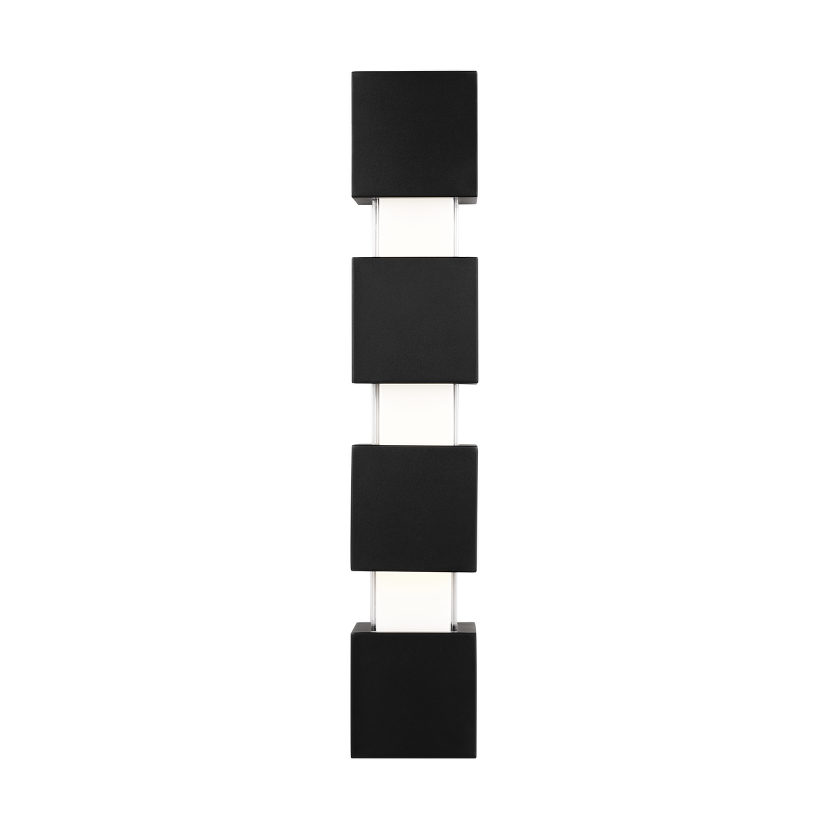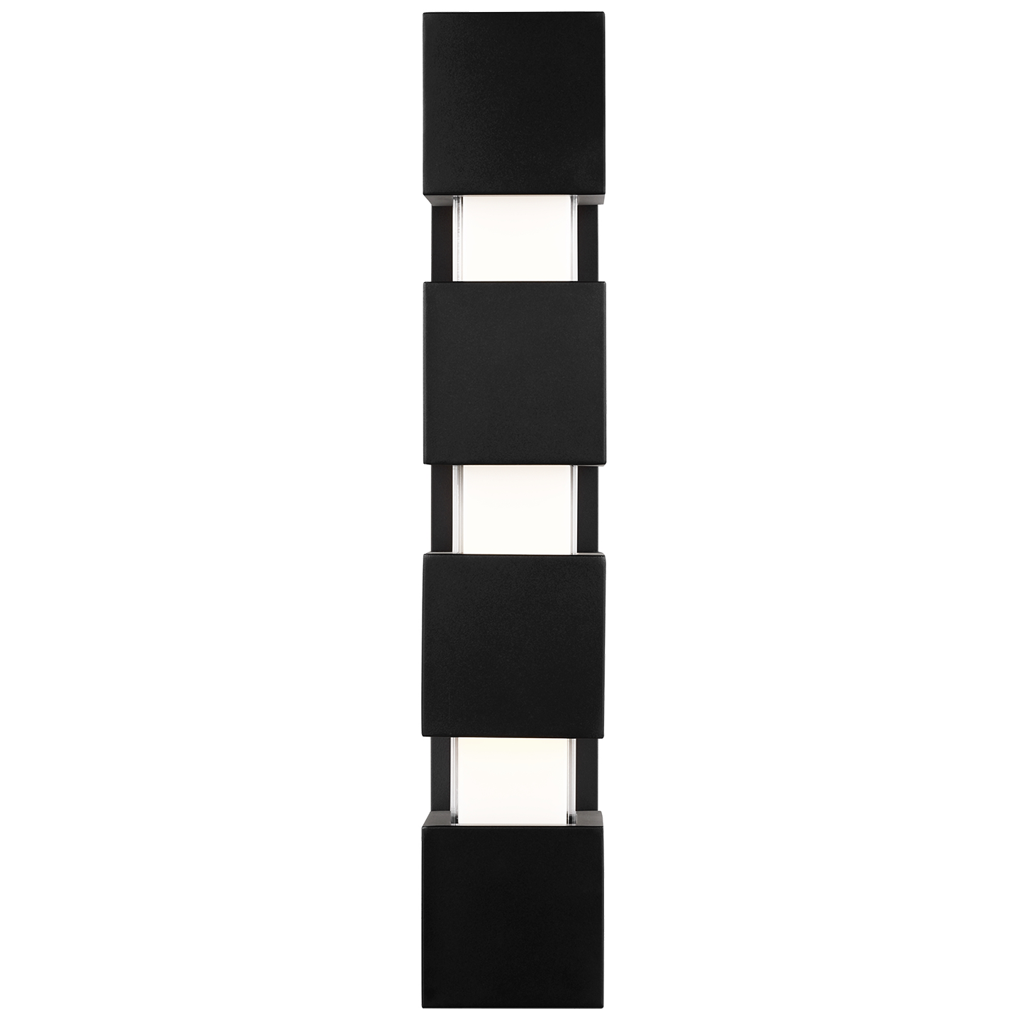 The Leagan Large Wall by Kelly Wearstler for Visual Comfort Modern makes a bold geometric-inspired statement. It features crisp, cast glass cubes interspersed inside oversized die-cast metal hardware. The cast glass is painted on the inside to conceal the light source and ensure a shadow-free and beautiful symmetry to the fixture. Ships with an optional secondary back-plate to allow greater flexibility in terms of junction box placement.