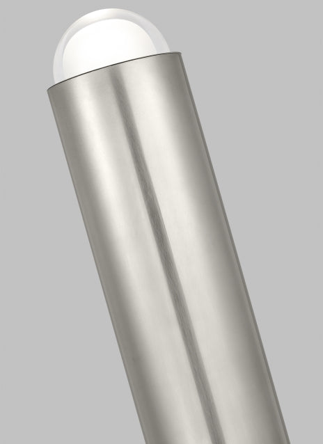 The Ebell Extra Large Floor Lamp by Kelly Wearstler for Visual Comfort Modern will make a bold statement in any space. The multi-dimensional domed glass prism is set on top of the pure cylindrical metal body. The concentrated warm LED within the frosted glass interior emits a state-of-the-art expression of light in this illuminating departure from the expected.