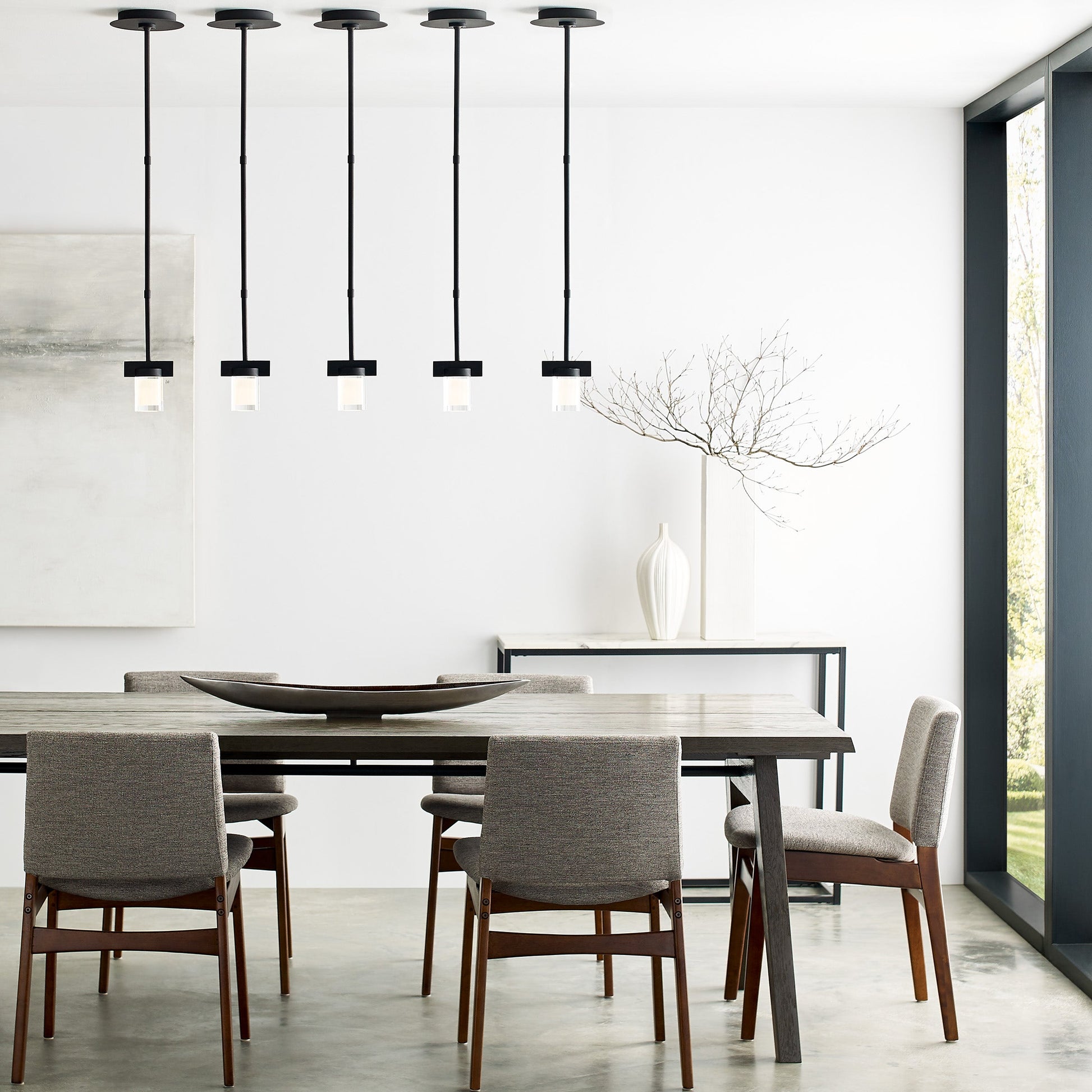 The Esfera Small Pendant by Kelly Wearstler for Visual Comfort Modern realizes the beauty of elemental materials and spatial symmetries. In an elevated exchange of visual textures and clarity of form, the transitional design of this piece is a modern portrait of the convergence of cylindrical multi-dimensional prisms as integral sources of light with simple, linear metal detailing.