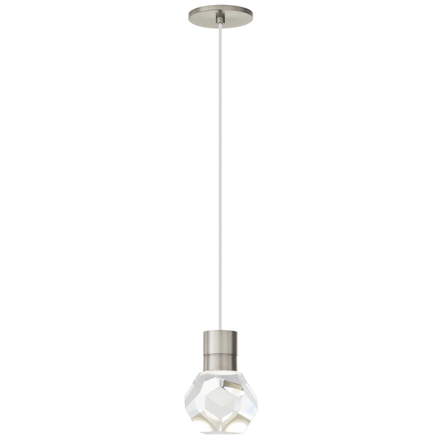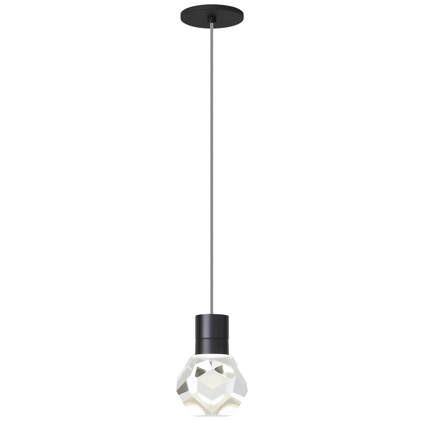 The Kira Pendant by Sean Lavin for Visual Comfort Modern is striking in appearance. The facetted cut crystal illuminates beautifully by a downward-firing LED that is hidden within the minimalist hardware above. With a modest scale the Kira is ideal for kitchens, living spaces, bedroom lighting and commercial applications. Comes with an energy efficient integrated LED lamp, which is fully dimmable to create the desired ambiance in any space. Available in 1-lite, 3-lite, 7-lite and 11-lite options. Clustered in groups, the Kira immediately becomes a stunning statement.