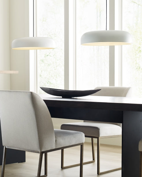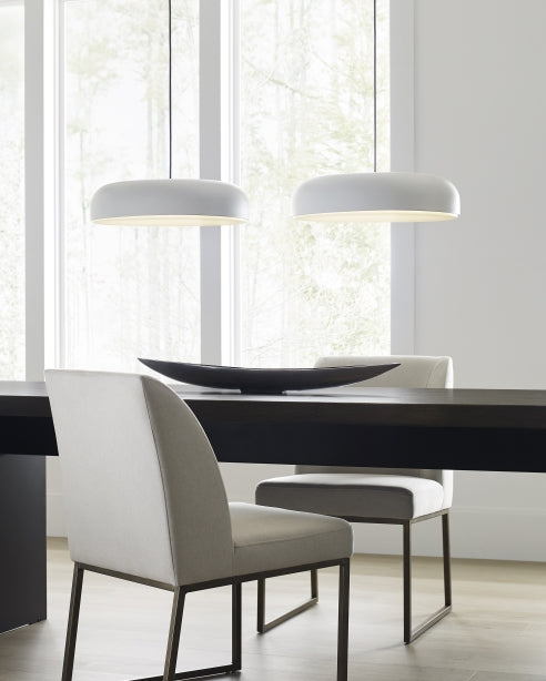 Kosa 18 Line-Voltage Pendant by Sean Lavin for Visual Comfort Modern is lighting designed to project modern simplicity. This dome-shaped pendant illuminates a smooth wash of light through an LED diffuser and generously fills the surface below. Generously sized with an 18 inch diameter, the Kosa is a great complement to any space.