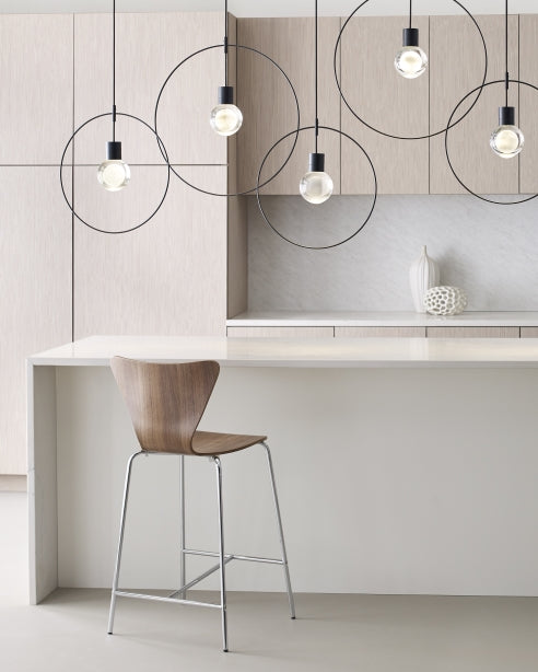 The Mina Pendant by Sean Lavin for Visual Comfort Modern features an elegant sphere of pure optic crystal. This beautiful floating orb is laser-etched and further illuminated by a powerful downward-firing LED hidden within the socket. Although smaller in diameter, the Mina brilliantly provides a bounty of task light onto surfaces below. Highly customizable, the Mina pendant features cord colors and on-trend finish options. The Mina ships with your choice of fully dimmable LED lamping. In addition to the wide range of customizable options, the Mina Pendant also comes with two complementary accessory options. Swag Hooks and the Locus accessory. Due to its contemporary yet raw style, the Mina can be used in a range of consumer and commercial lighting applications. Coordinate your look with the Mina Wall Sconce and Table Lamp.