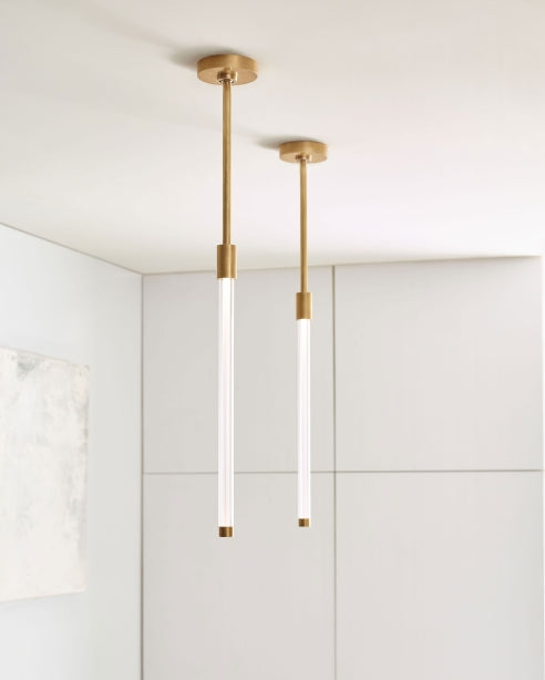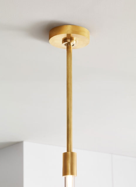 The Phobos Small Pendant by Kelly Wearstler for Visual Comfort Modern exceptionally contemplates clean intersecting forms and the purity of tubular light in a modern dialogue of geometries. Radial and rectilinear landscapes create a sculptural world for customized LED lamping that features a central light-guide channeling for a fully diffused glow.