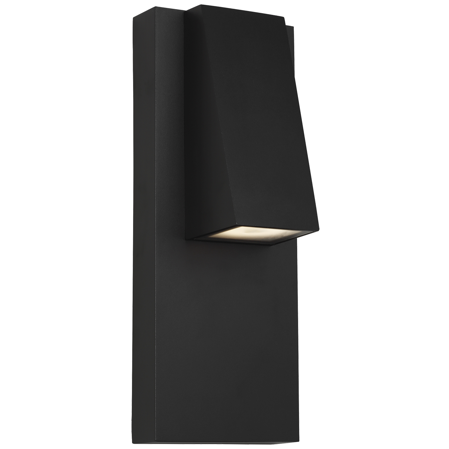 With its highly pitched roofline, the modern lighting design of the Peak outdoor wall sconce light by Sean Lavin for Visual Comfort Modern is reminiscent of a clapboard shingle. The angular LED downlight gently grazes the surface of the extended back plate. Cleverly hidden hardware ensures a clean look. Perfect for front door outdoor lights or the back of a home as back porch lights, Peak is available in modern finishes.