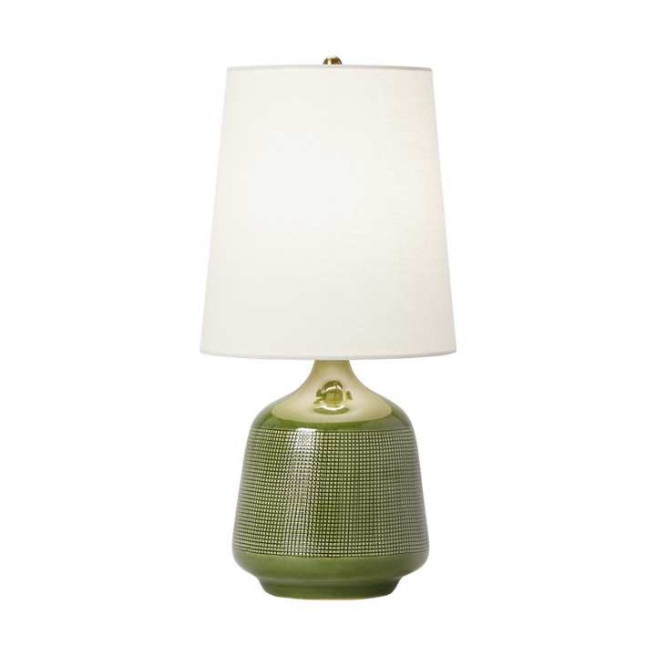 The Ornella small table lamp by AERIN for Visual Comfort Studio has been styled in a pleasing rounded shape enhanced with imprinted net detailing, offering an artistic interplay between a smooth and textured surface. The lamp is further enhanced with a well-balanced linen shade, which casts soft illumination.