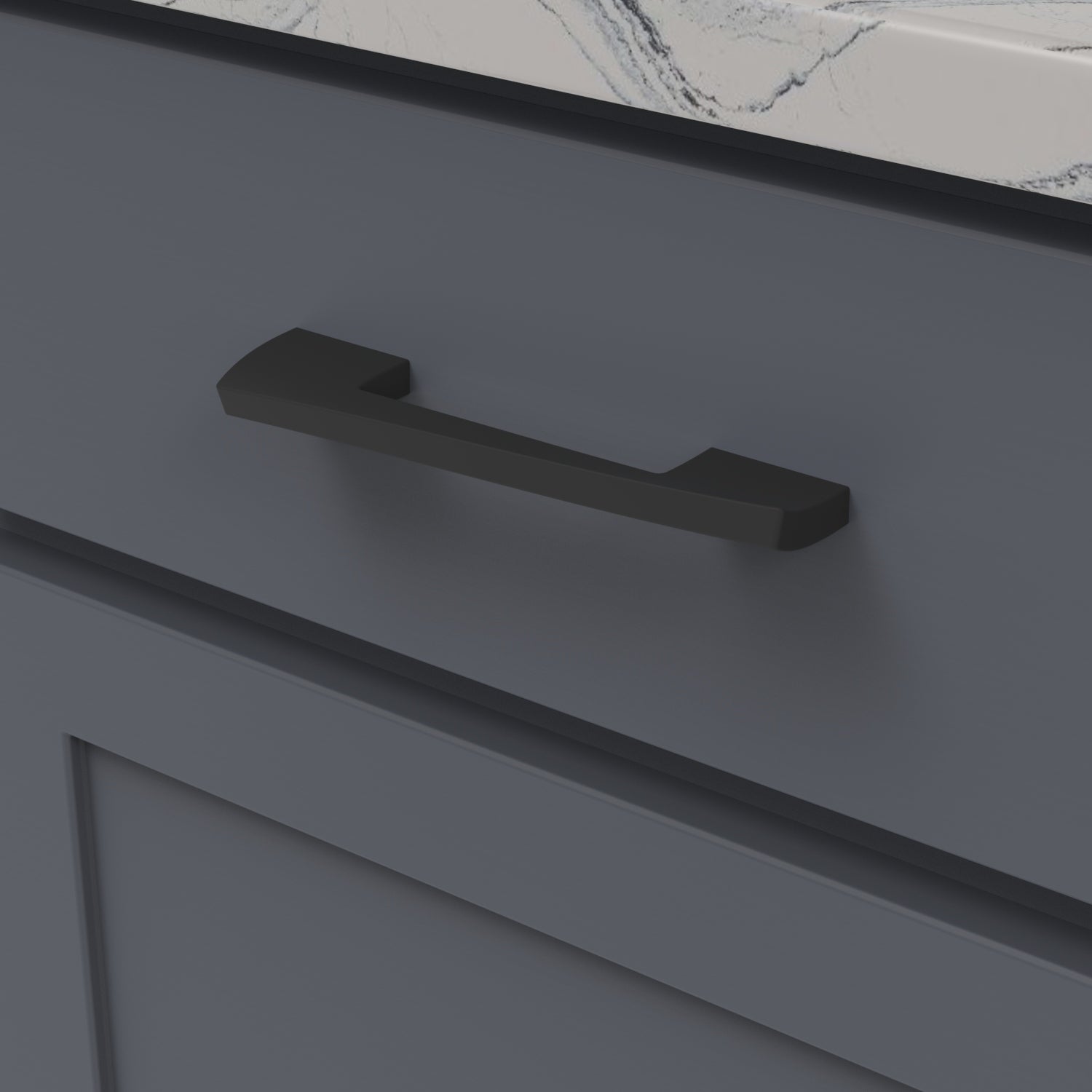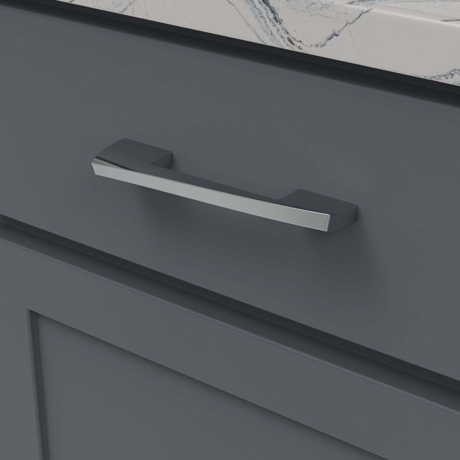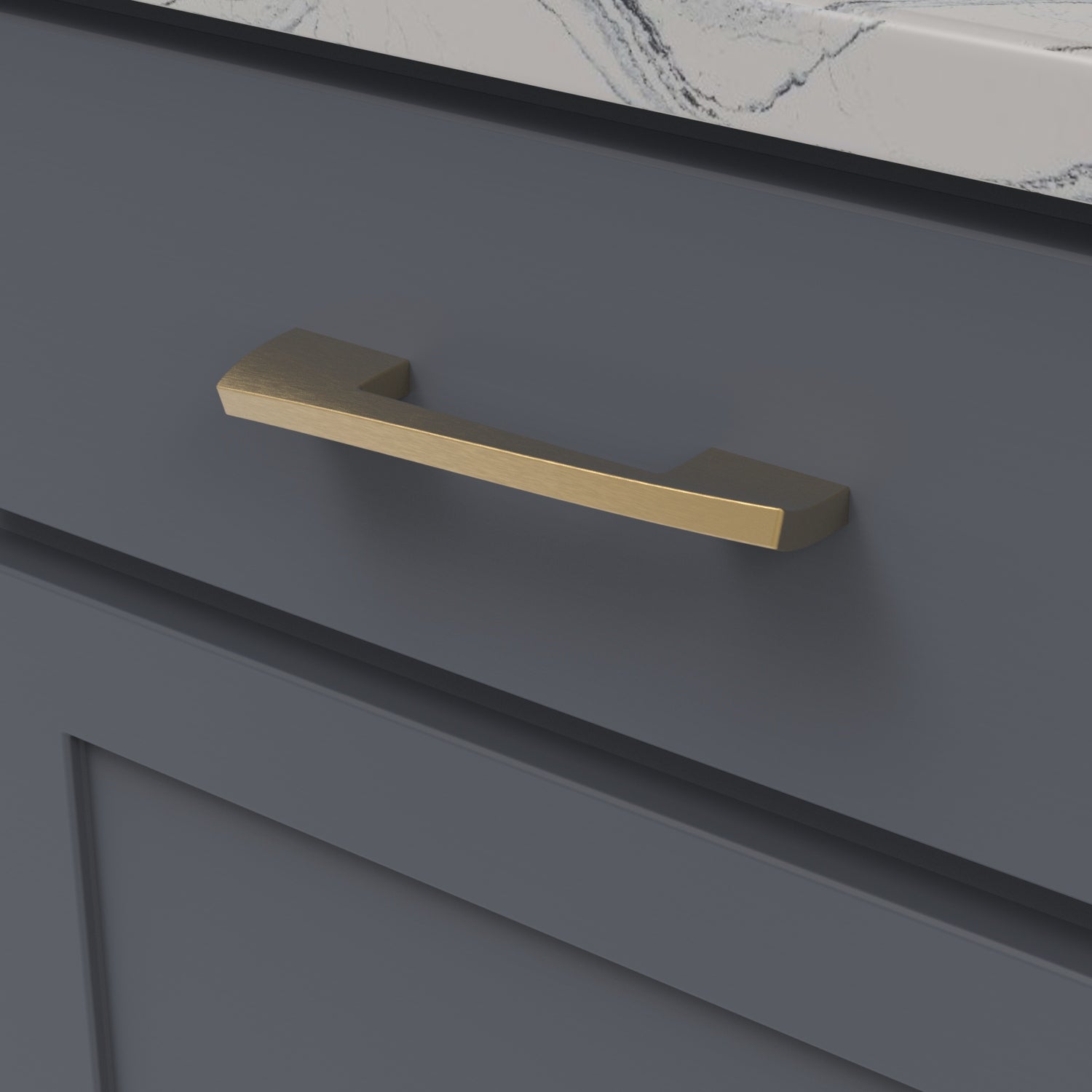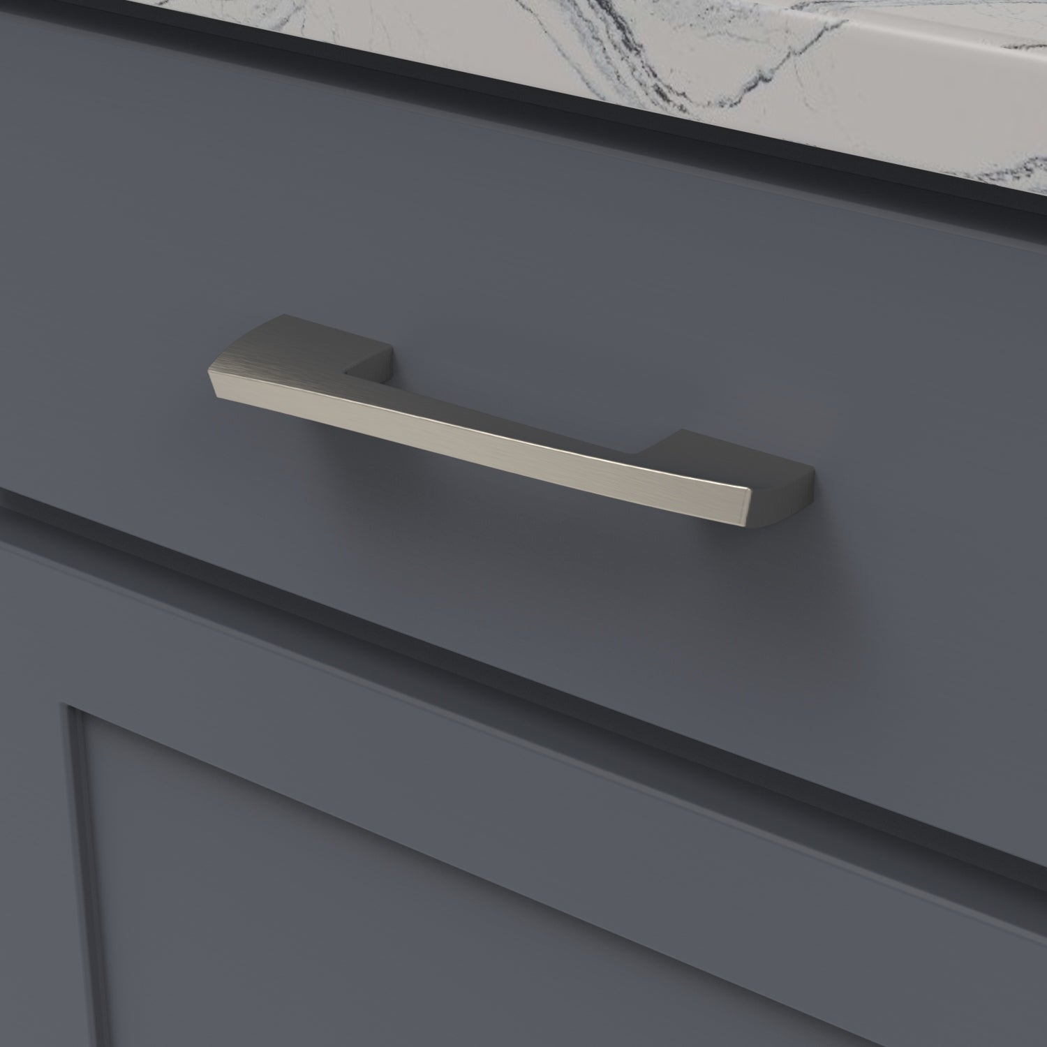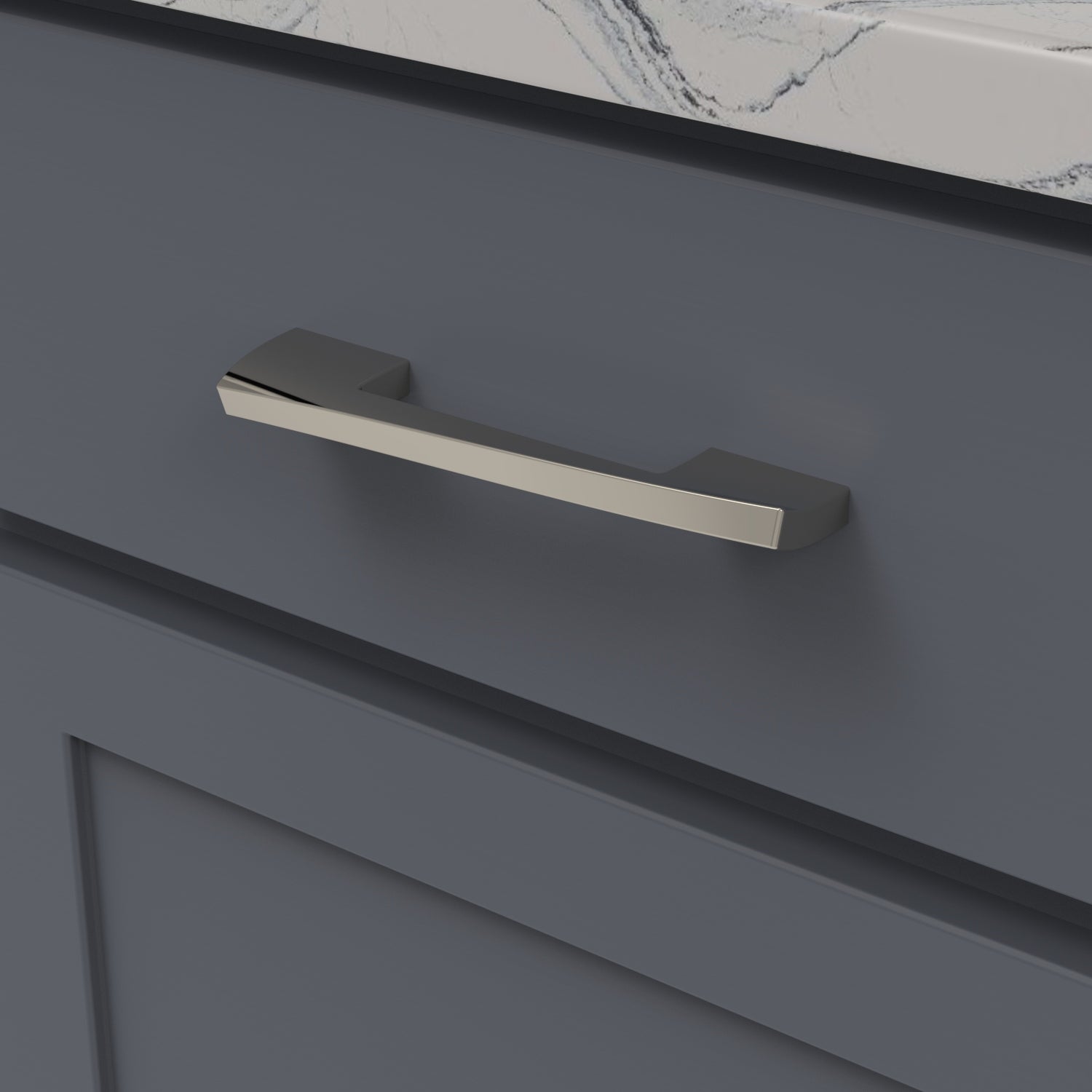 An inspired invocation of the imaginative whimsy displayed in iconic architecture. The slight flexing of the pull and lift in the knobs are a solid contemporary statement.