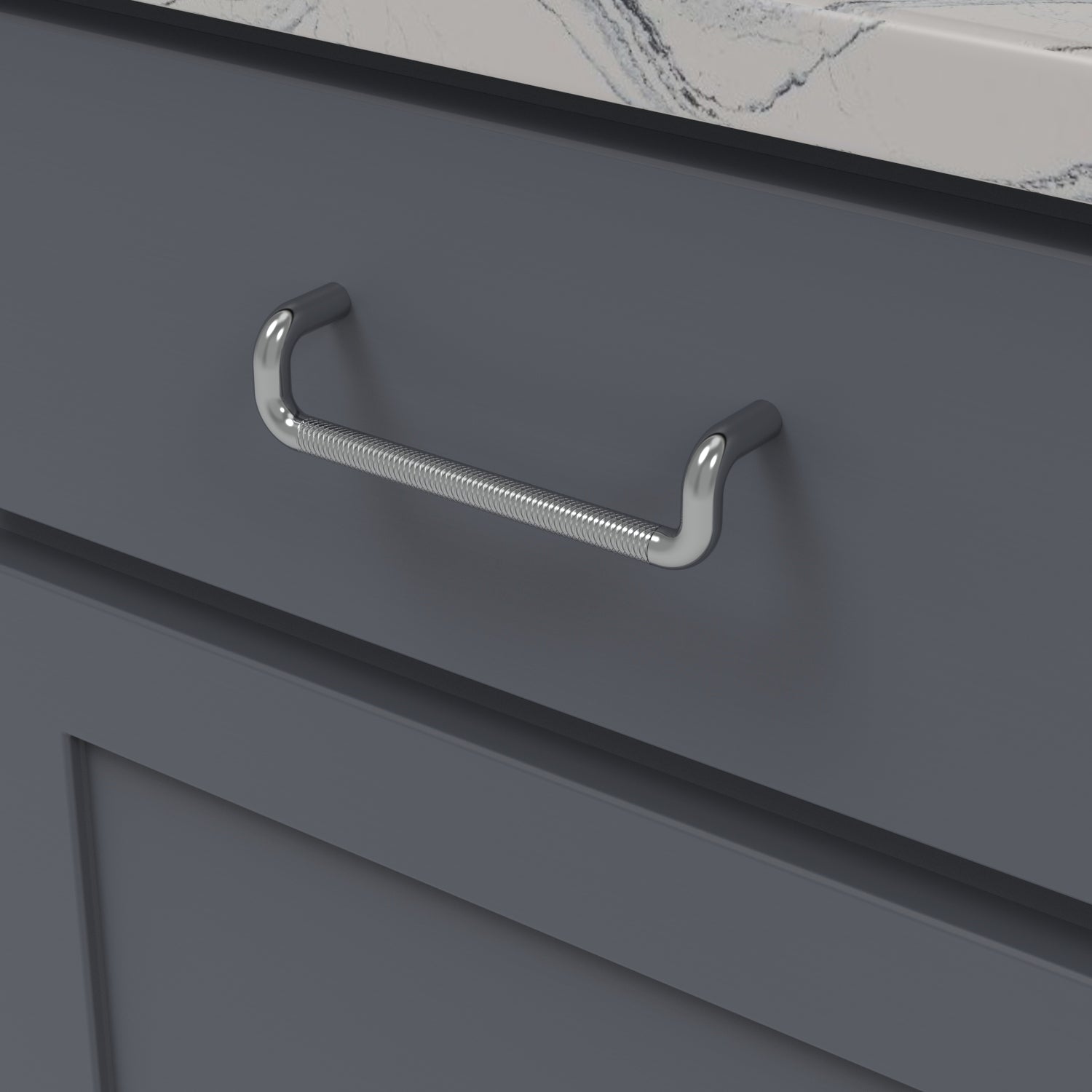 Knurled surfaces and edgy geometry make this a notable pick. Machined precision amplified with texture brings subtle grit to an edgy room.