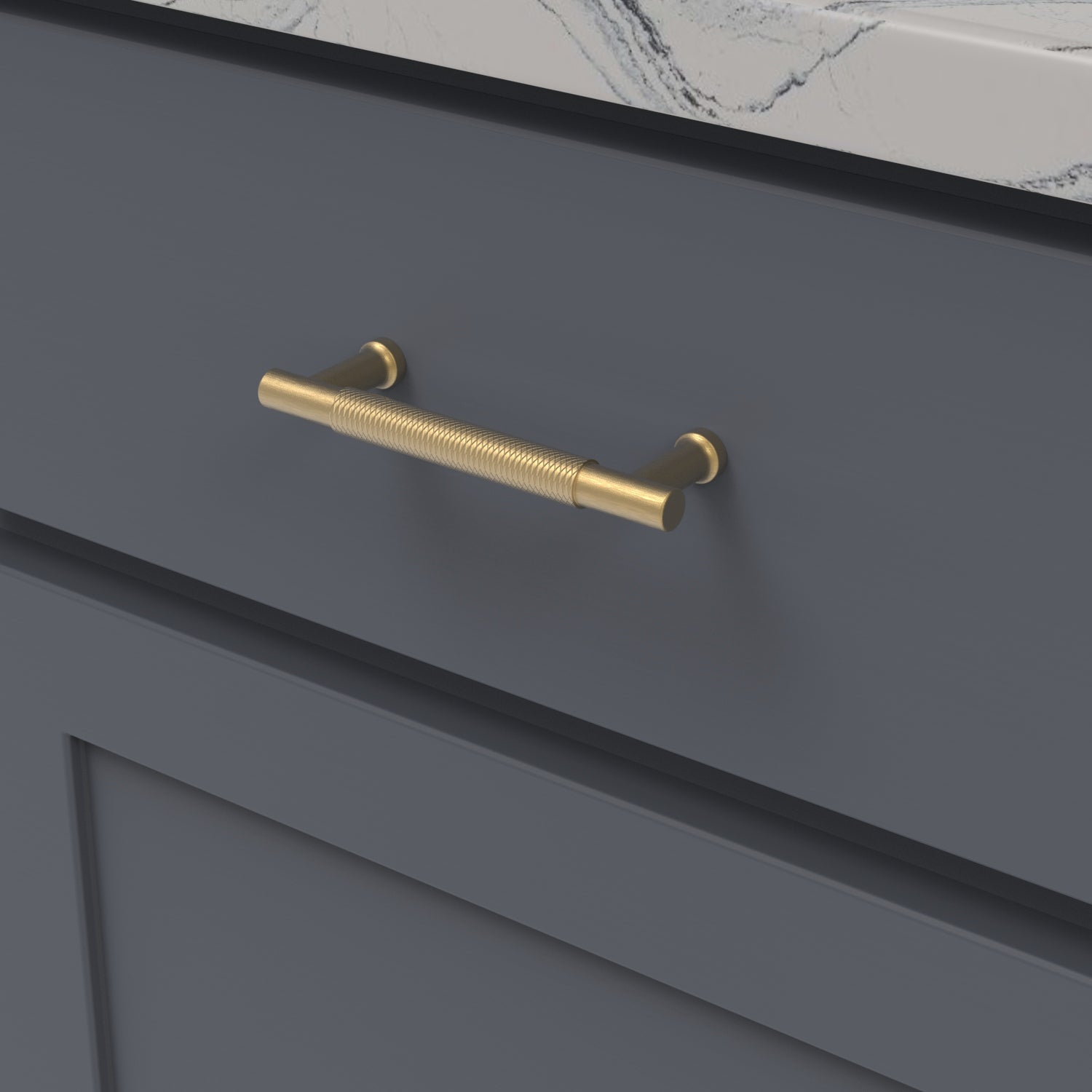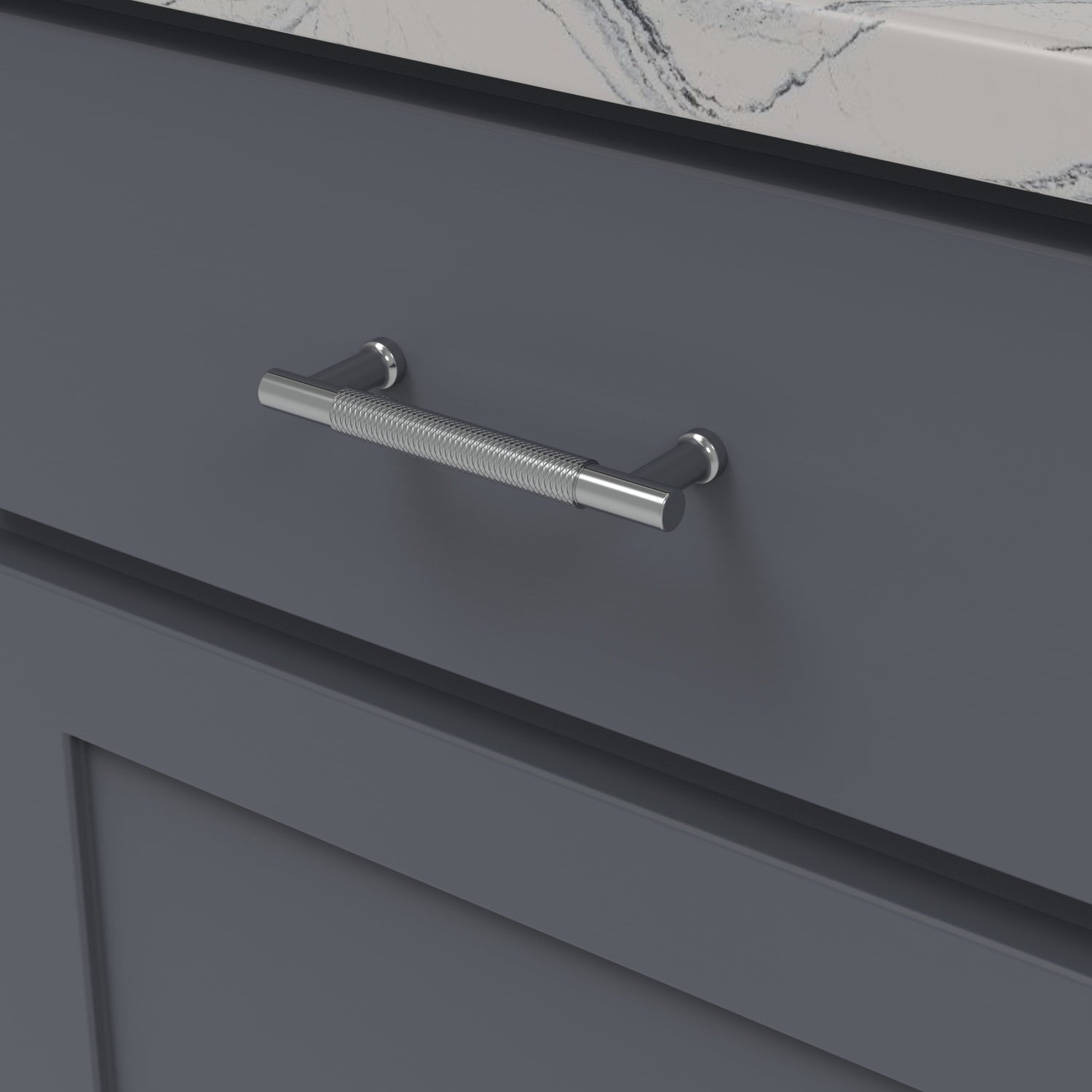 Knurled surfaces and edgy geometry make this a notable pick. Machined precision amplified with texture brings subtle grit to an edgy room.