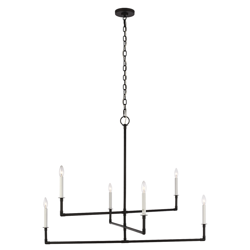 Chapman & Myers designed this modern series with sculptural sensibility, crafted of steel with white candle holders to complete the design. Bayview is available in Aged Iron or Polished Nickel finish and the assortment includes: medium, large and linear chandeliers, left and right sconces and a single sconce. Perfect for a dining area.