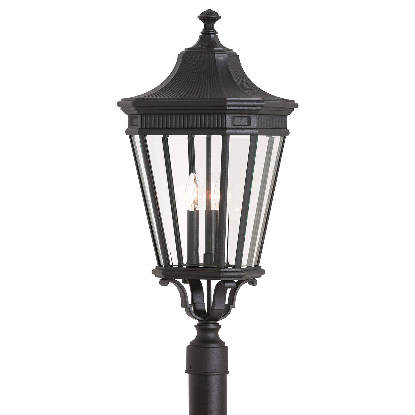 The traditional, antique gas lantern-inspired design of Cotswold Lane features dentil molding at the top of each pane of beveled glass. Cotswold Lane's profile is timeless and elegant. Available with two finish and glass options: a Black or Grecian Bronze frame with Clear Beveled glass or Clear Seeded glass panels.