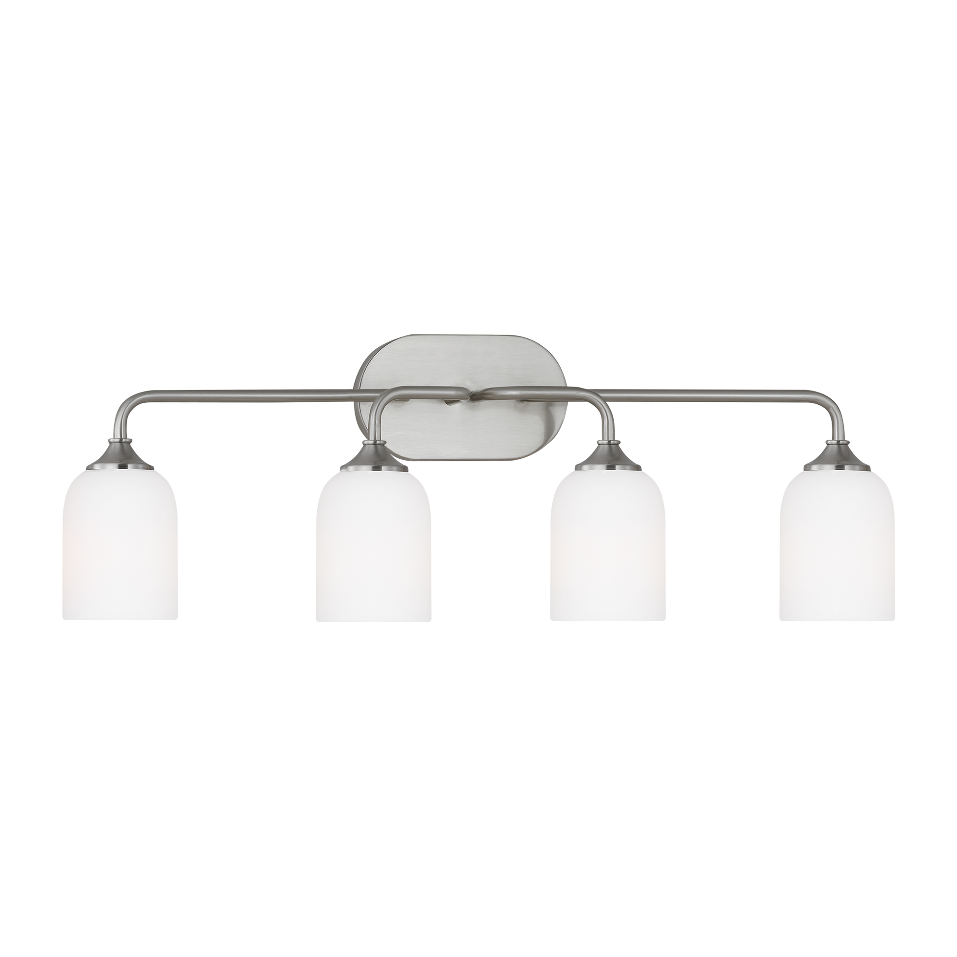 The subtle detail of the Emile series allows this transitional design to fit into any décor easily. The sleek, sweeping arms and Satin-Etched glass shades add touches of elegance to its streamlined profile. Equally at home in a contemporary, urban setting or a traditional décor in the suburbs, Emile is available in three transitional finishes.