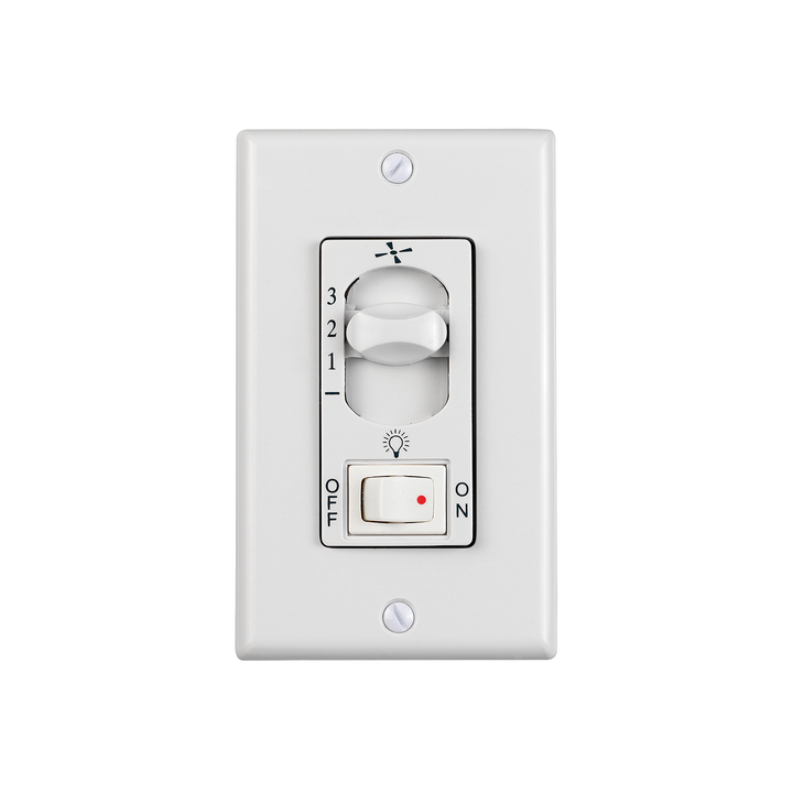 The Universal Wall Control in White provides wall mounted hardwired control capability for compatible fans.
