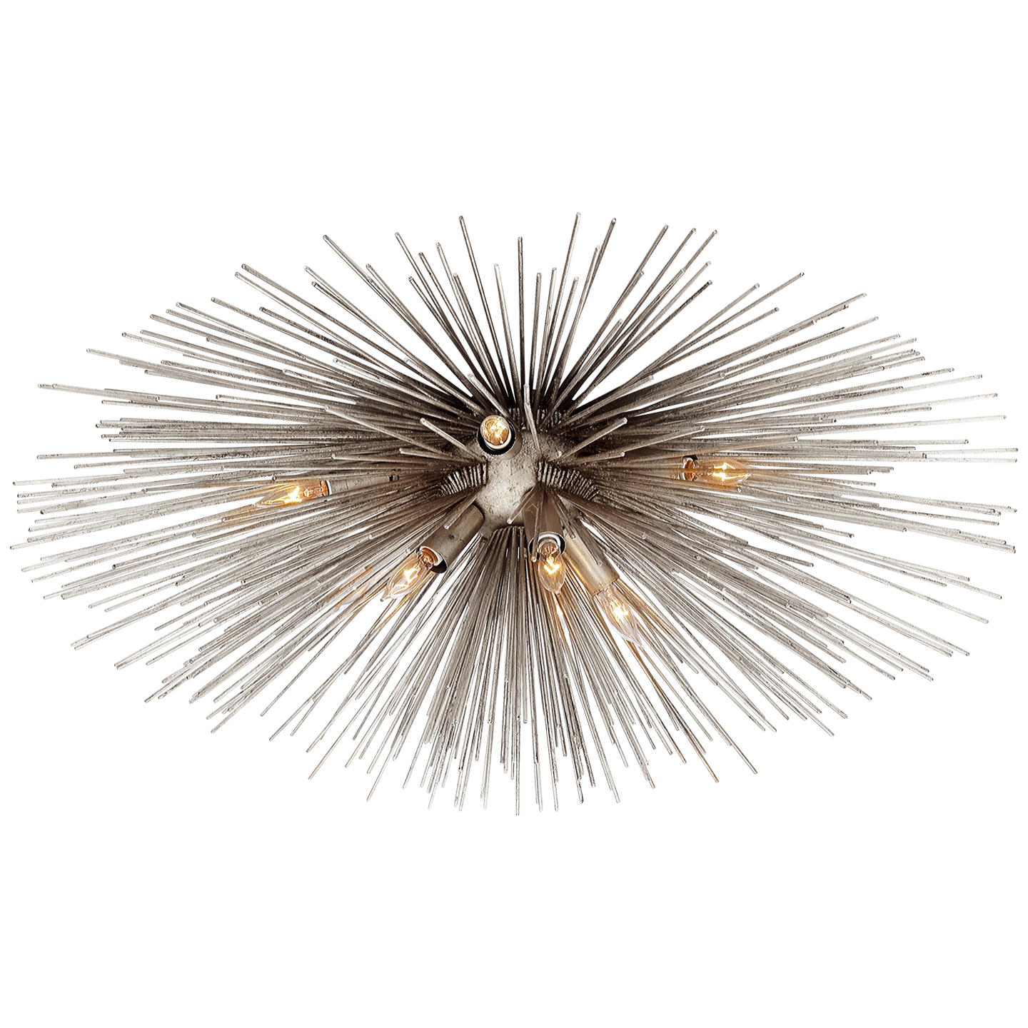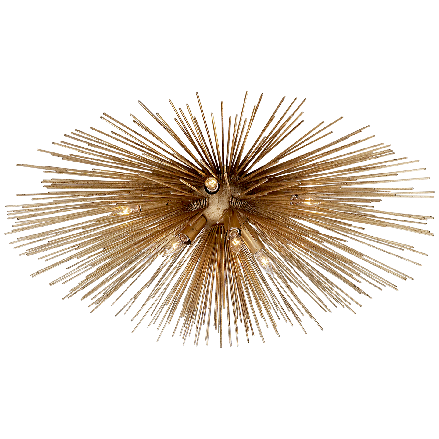 The Strada series by Kelly Wearstler features delicate sculptures of radiating quills that cast a striated glow across ceilings and walls. Available as flush mounts, chandeliers, and sconces, these designs add delicate volume and dynamic interest to interior spaces, celebrating vibrant organic forms and sleek metal.