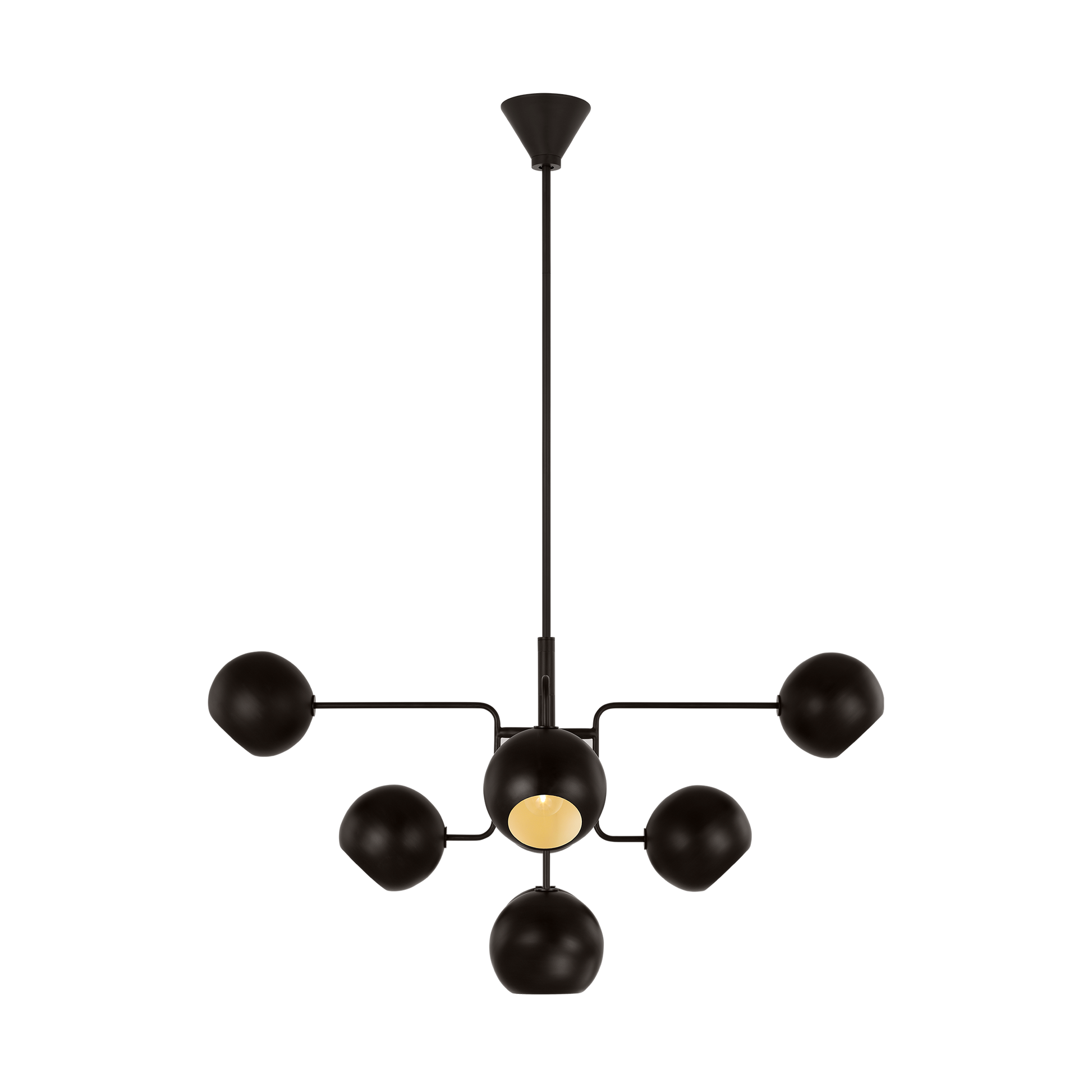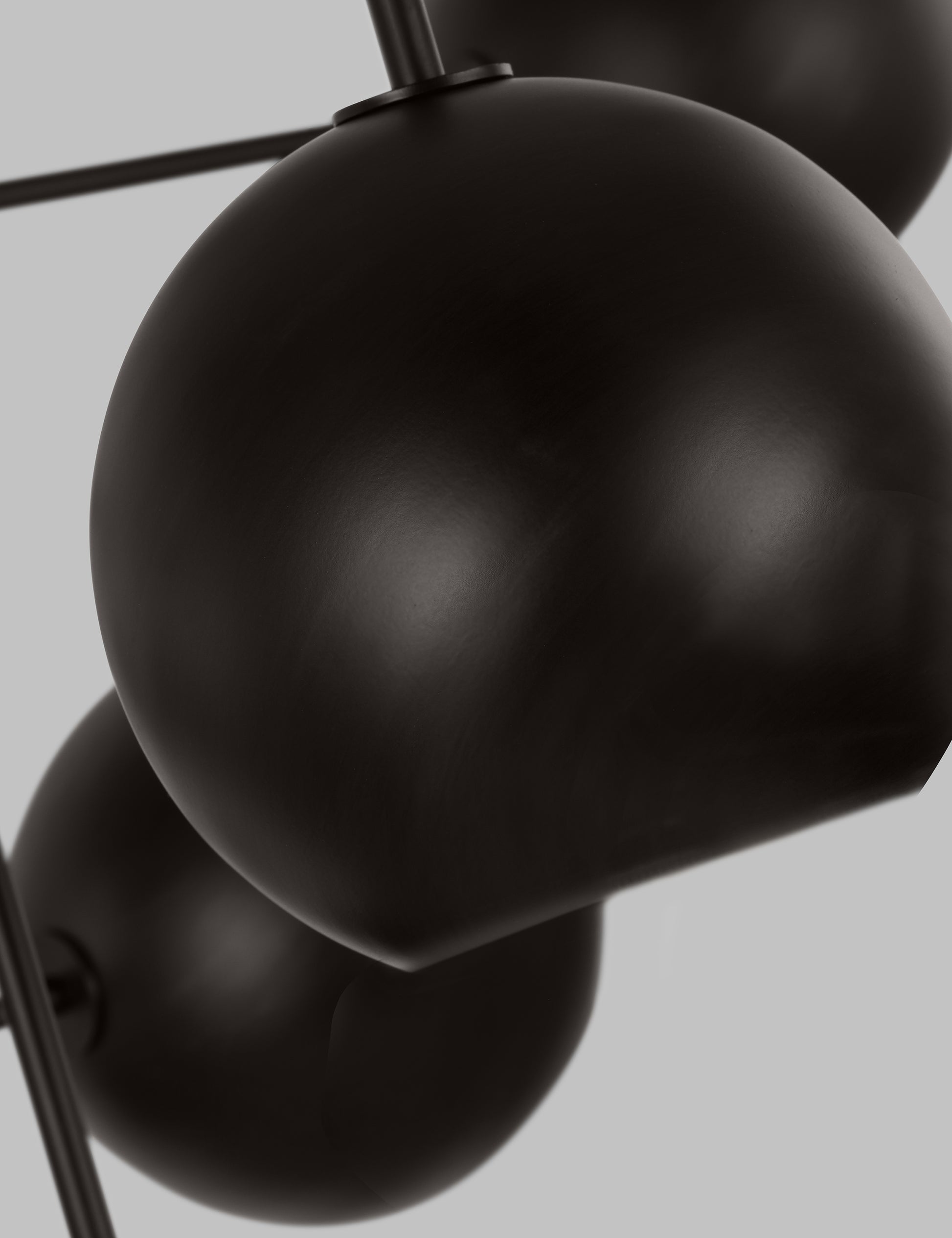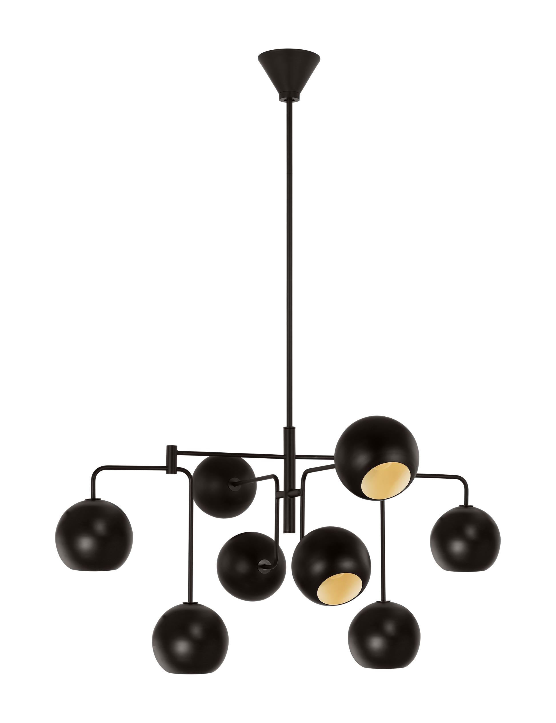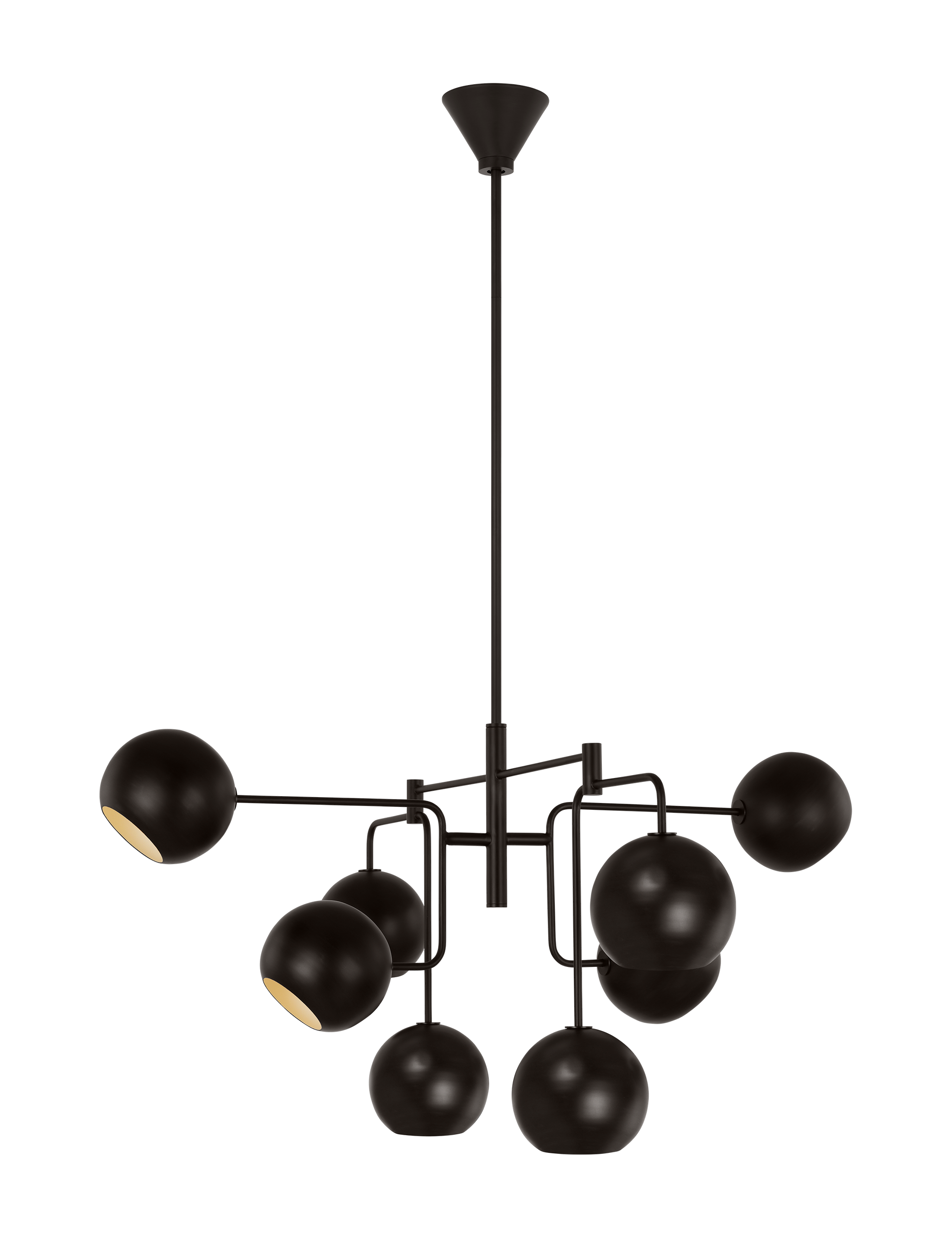 Designed by Christiane Lemieux, the Chaumont eight light multi tier chandelier in aged iron supplies ample lighting for your daily needs, while adding a layer of today's style to your home's décor. Inspired by the mobiles of Calder and classic French mid-century forms, the multi-directional shades suggest movement. This series includes 3 large chandeliers and a task sconce, all available in a dramatic Aged Iron living finish which will patina over time.
