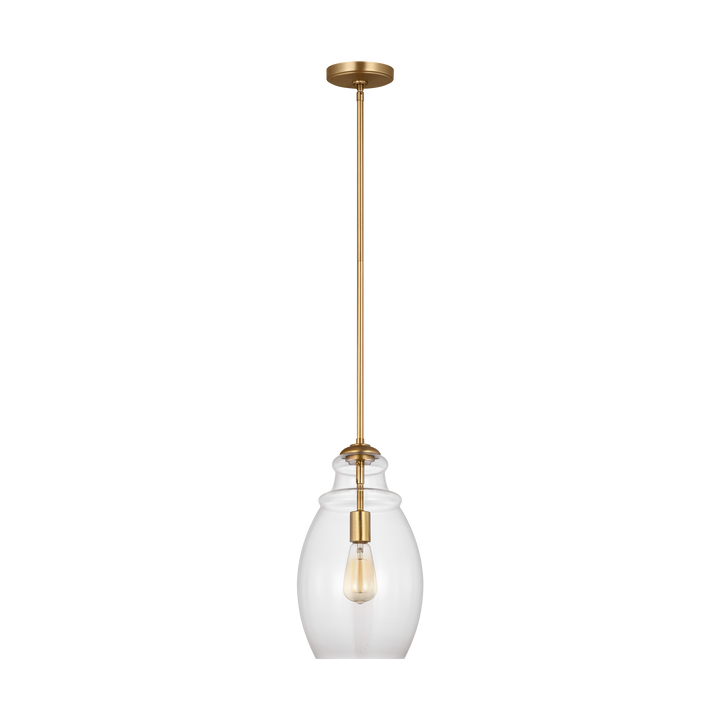 The Marino one light indoor pendant in chrome is the perfect way to achieve your desired fashion or functional needs in your home. Marino features a thick Clear Glass shade with a single lamp suspending downward from the center. The elegant turning detail at the top of the body compliments spaces ranging from traditional to modern. Marino is offered in three distinct finish options: Satin Nickel, Chrome and Oil Rubbed Bronze.