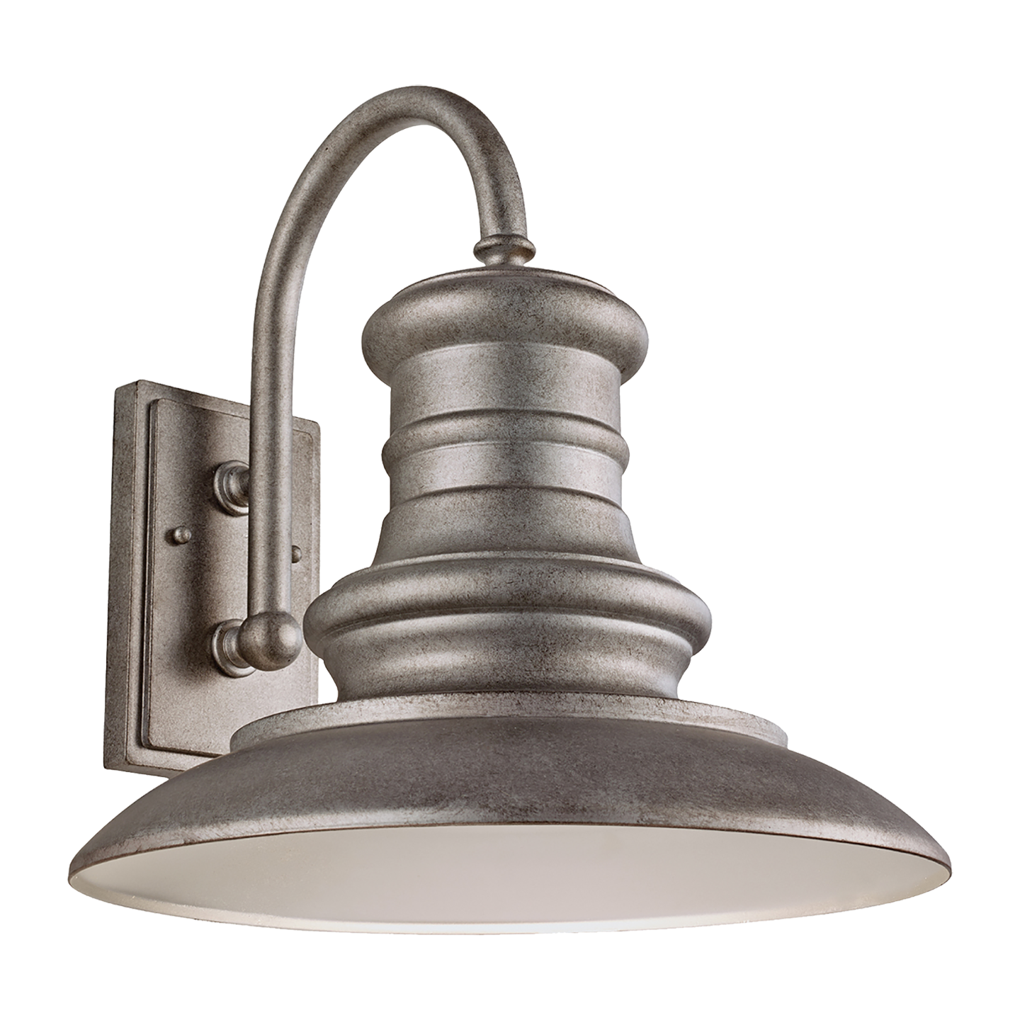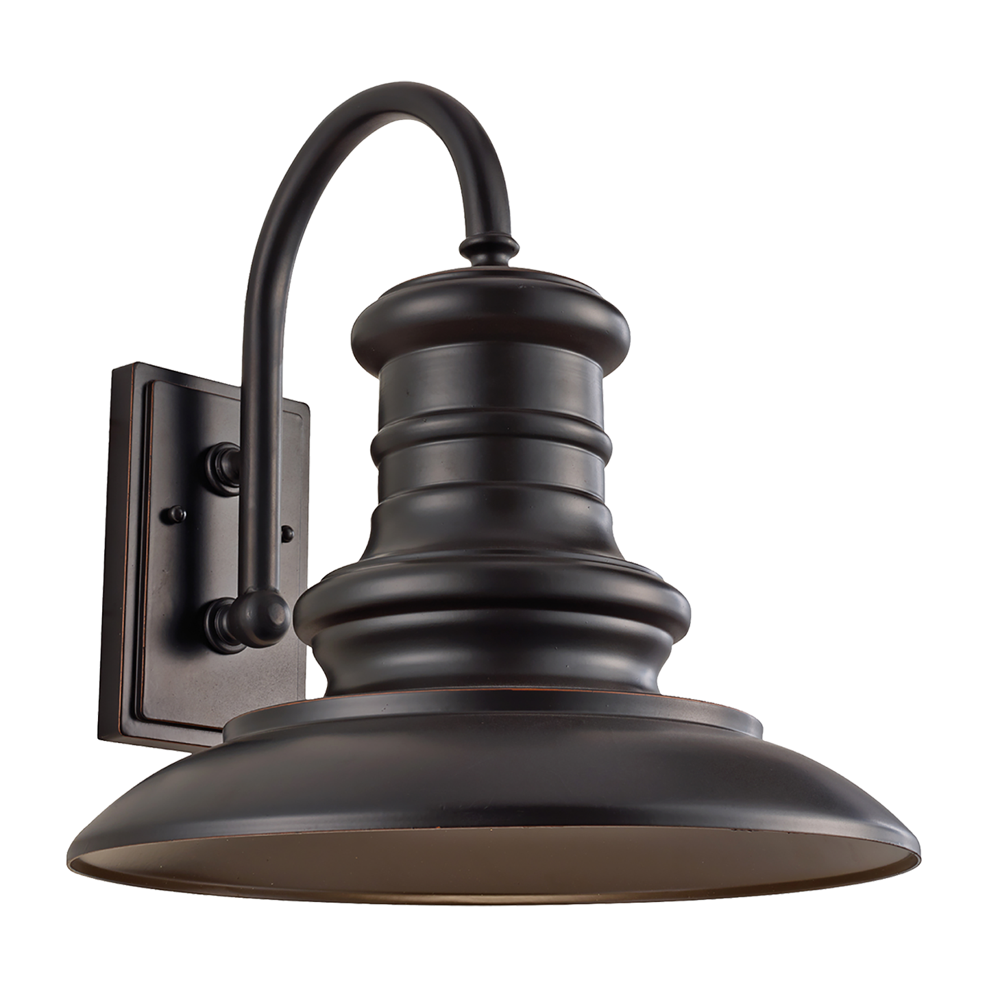 The Redding Station one light outdoor wall fixture in restoration bronze enhances the beauty of your property, makes your home safer and more secure, and increases the number of pleasurable hours you spend outdoors. All Aboard! Reminiscent of old railroad lighting, the Redding Station Collection warmly illuminates its surroundings with a vintage railroad vibe. The all-aluminum shades feature textured details. Redding Station is available in three finish options: Tarnished Silver, Restoration Bronze and Textured Black.