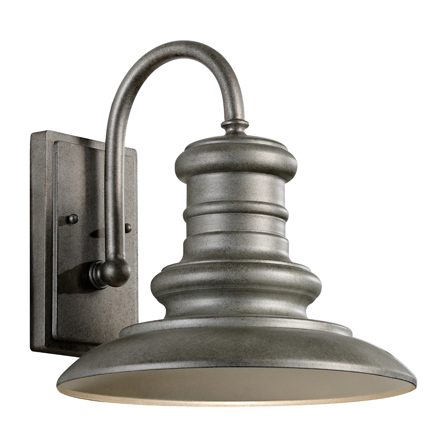 The Redding Station one light outdoor wall fixture in restoration bronze enhances the beauty of your property, makes your home safer and more secure, and increases the number of pleasurable hours you spend outdoors. All Aboard! Reminiscent of old railroad lighting, the Redding Station Collection warmly illuminates its surroundings with a vintage railroad vibe. The all-aluminum shades feature textured details. Redding Station is available in three finish options: Tarnished Silver, Restoration Bronze and Textured Black.