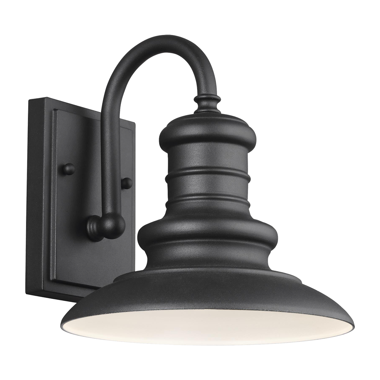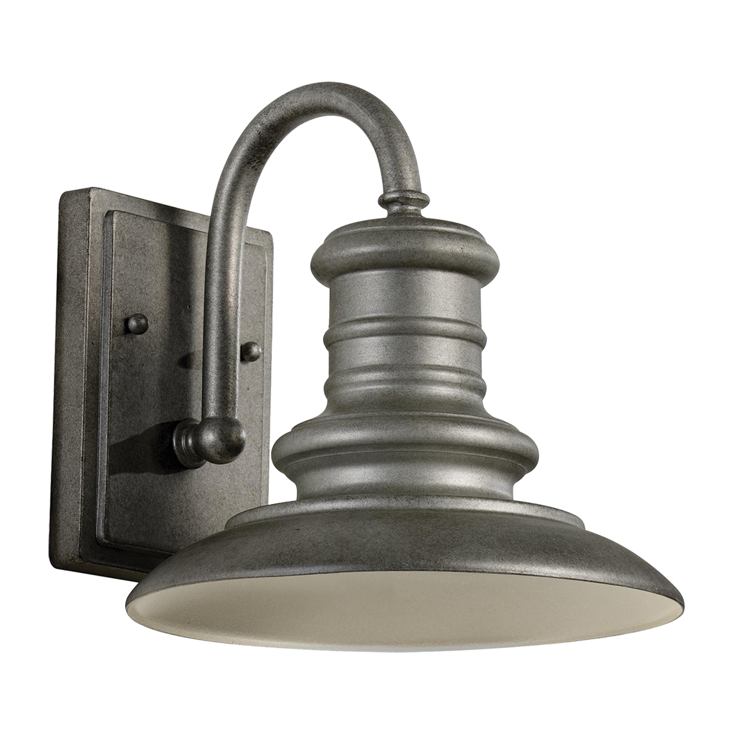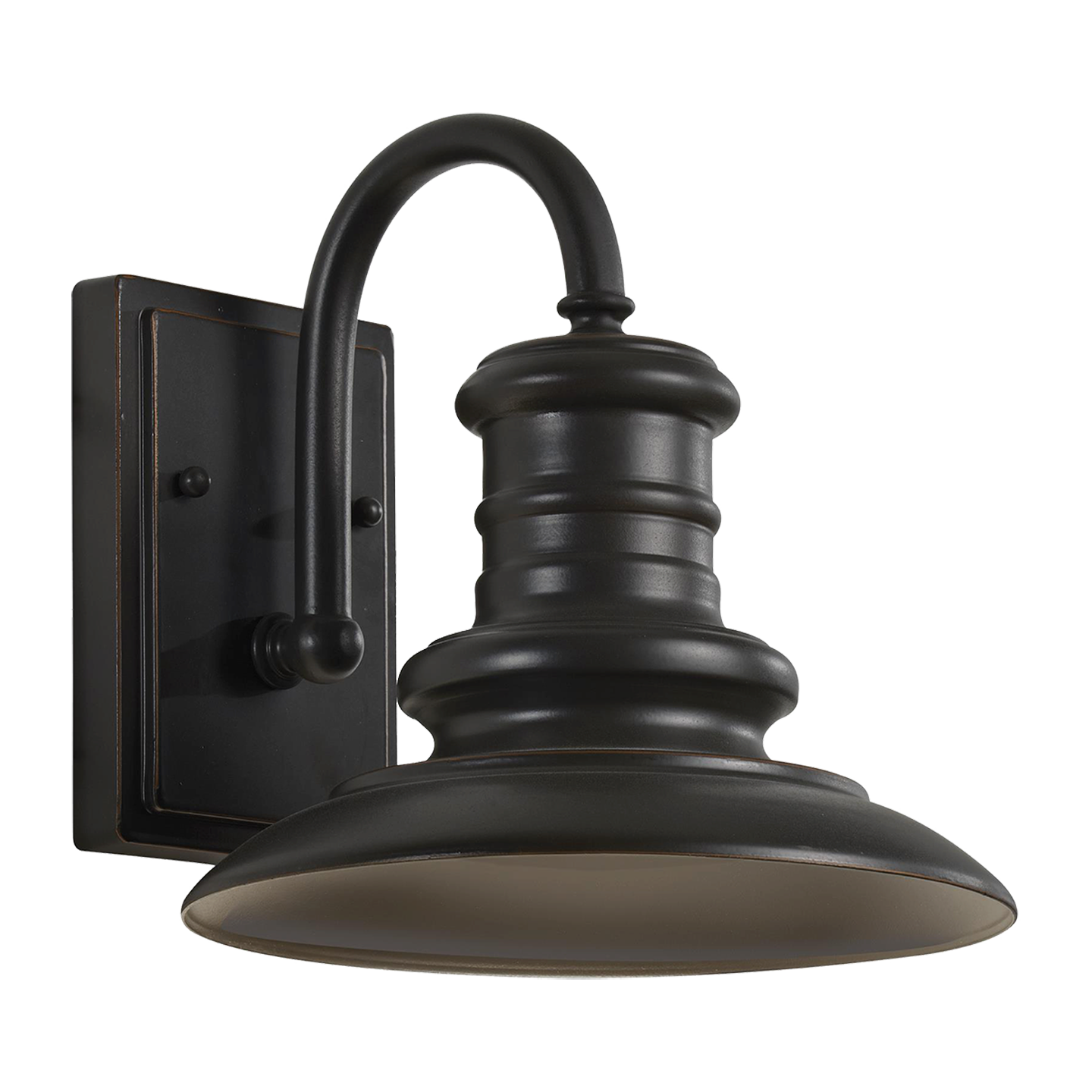 The Redding Station one light outdoor wall fixture in restoration bronze creates a warm and inviting welcome presentation for your home's exterior. All Aboard! Reminiscent of old railroad lighting, the Redding Station Collection warmly illuminates its surroundings with a vintage railroad vibe. The all-aluminum shades feature textured details. Redding Station is available in three finish options: Tarnished Silver, Restoration Bronze and Textured Black.