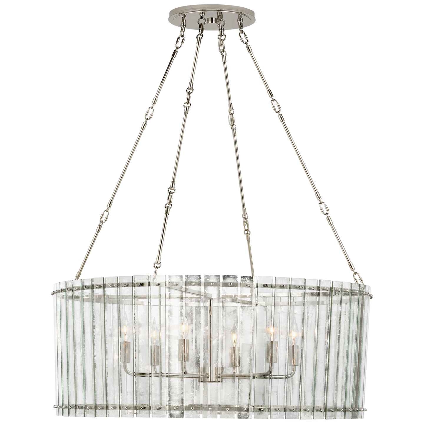 The Cadence by Carrier and Company is characterized by its utilization of antiqued mirrored glass, reminiscent of Italy's Murano glass and traditional craftsmanship, blending art deco allure with modern sensibilities. The cascading tapered glass, available in various shapes and sizes, beautifully reflects and refracts light, creating a delicate and ethereal ambiance. Metal banding offers structural support across chandeliers, flush mounts, and sconces, ensuring a romantic touch of sparkle in foyers, dining rooms, living spaces, bedrooms, and hallways alike.