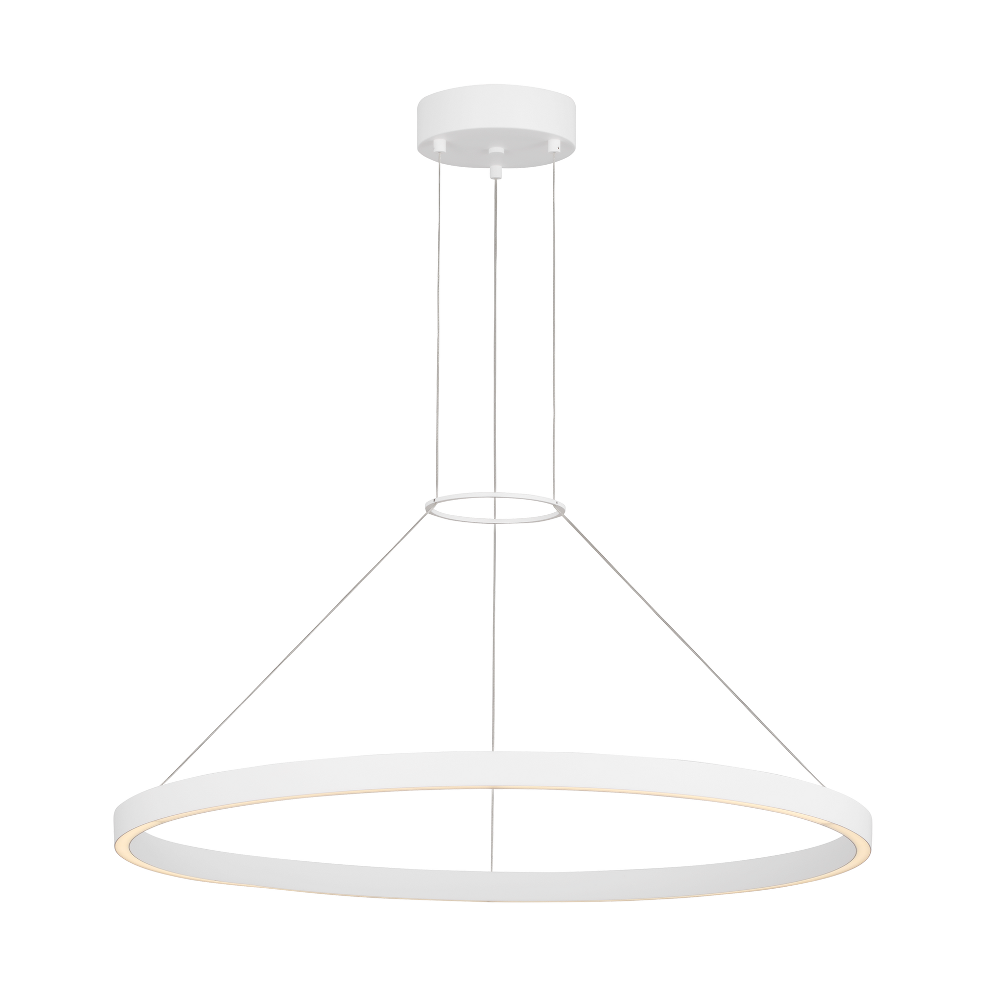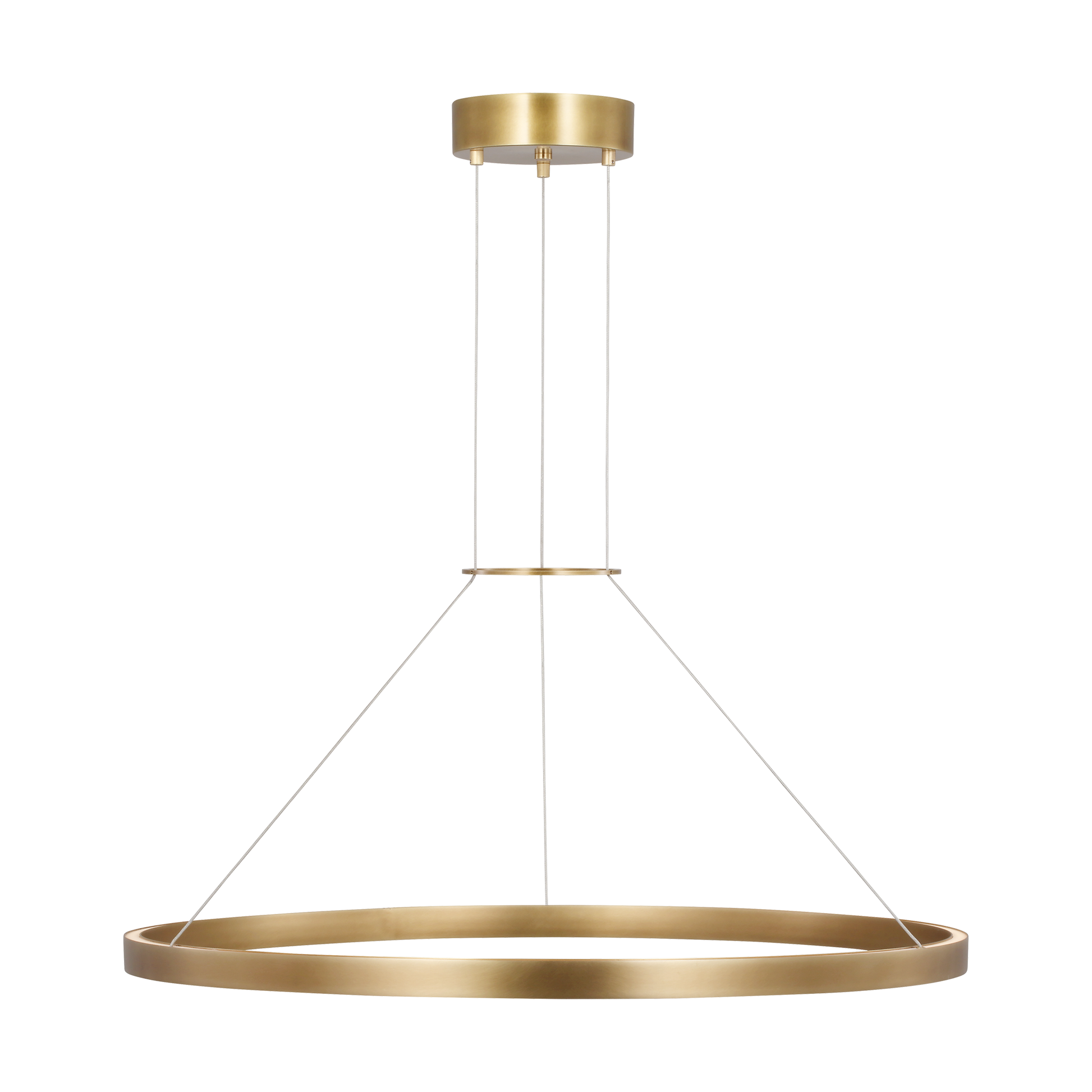 The Fiama chandelier by Sean Lavin is a transitional style chandelier but with an entirely modern twist. At its most unadulterated form the Fiama is a slender metal ring that houses gently diffused upward and downward firing LEDs, providing functional light with an ultra-chic aesthetic and are accented with metal spacers for a touch of contrast. This modern work of art is ideal for a wide range of lighting applications such as dining room lighting, foyer lighting and a host of commercial lighting applications. The Fiama pendant light ships with a fully dimmable integrated LED lamp.