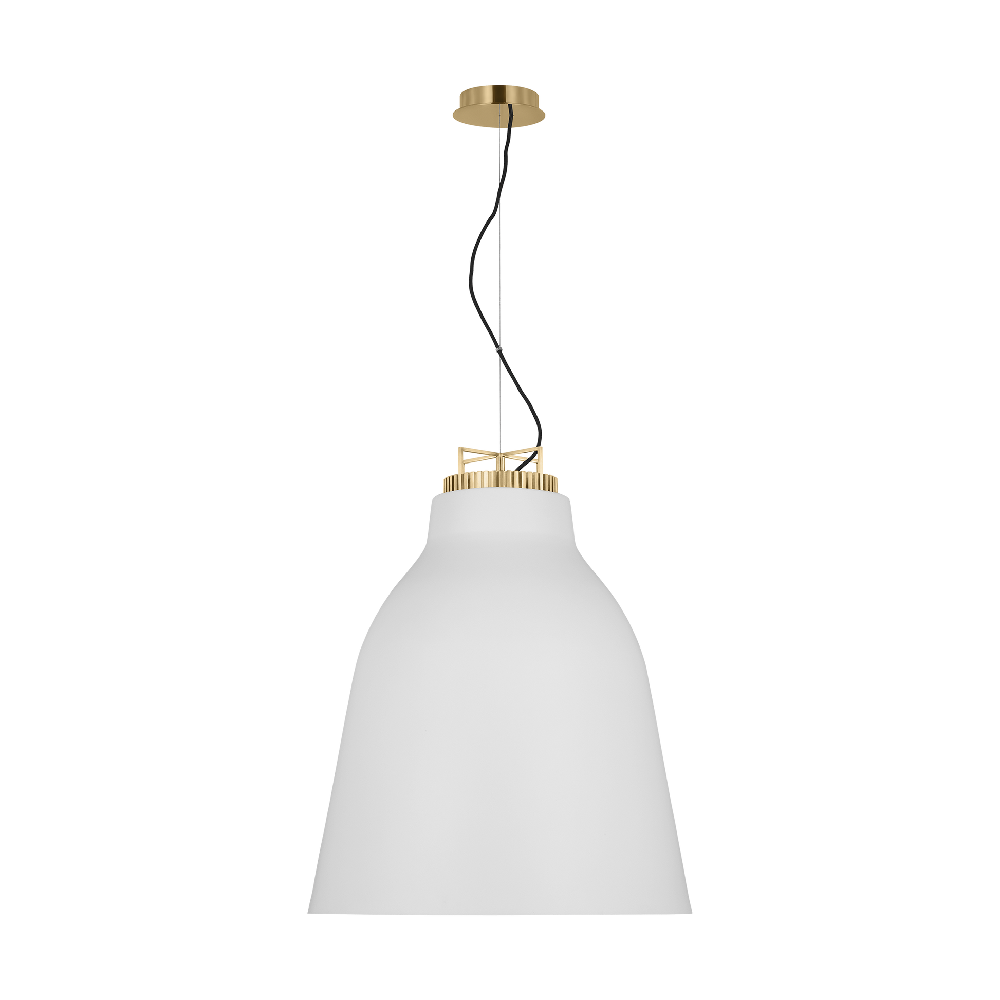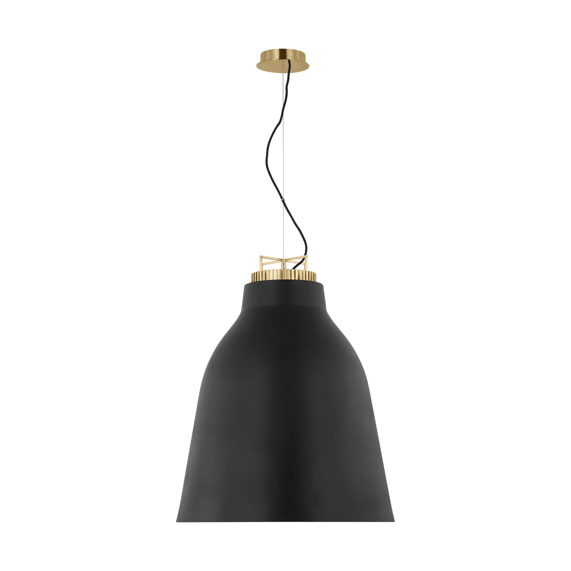 The Forge Extra Large Tall Pendant by Sean Lavin was inspired by the industrial age yet modernized with a lazy cord and a decorative brass heat-synced housing and canopy.