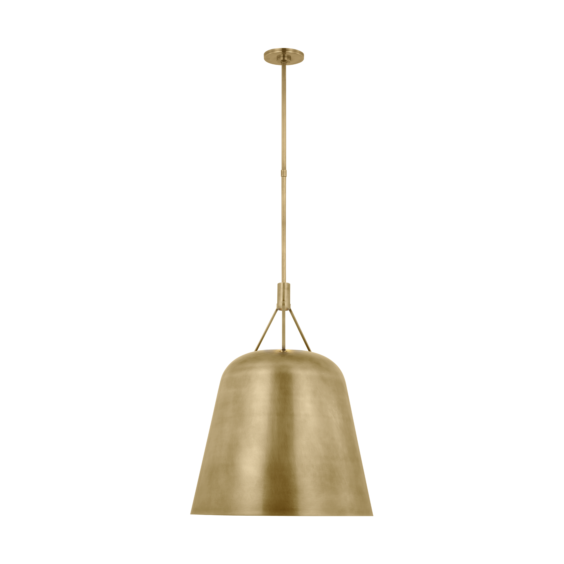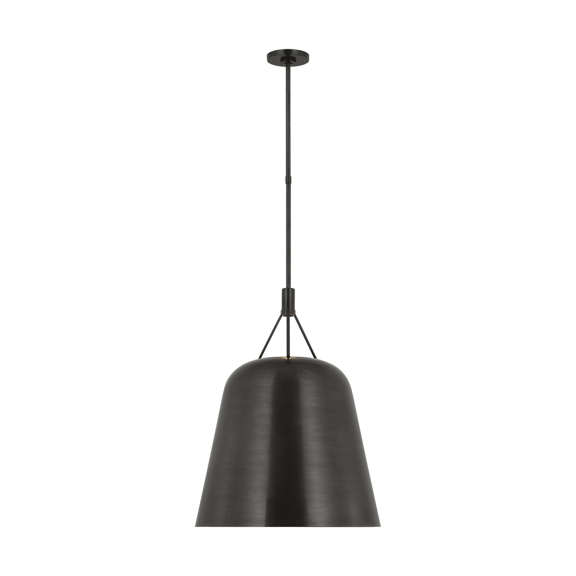 The refined Industrial Sospeso Tapered X-Large Pendant by Sean Lavin will bring a touch of retro-modern style to any space. Featuring thick spinning, strong edge details, and beautiful thin straps that connects to the shade gives bold substance to this pendant. Fill your space with a wonderful warm glow and plenty of downward focused illumination. Available in three different silhouettes which can be mix-and-matched and grouped in multiples for a unique lighting option.