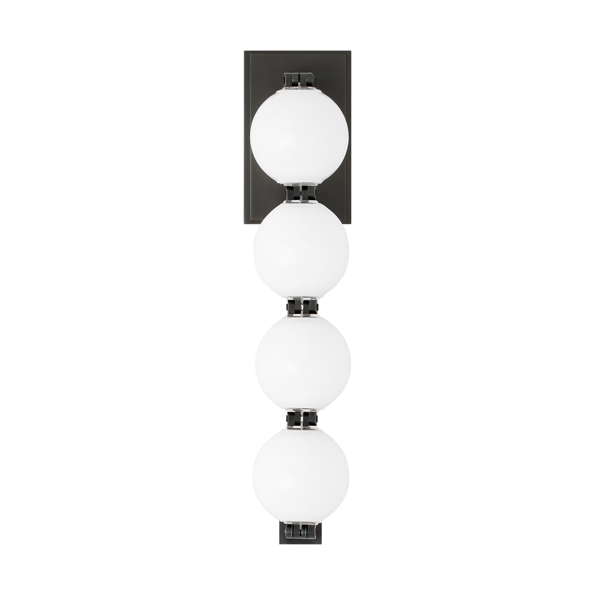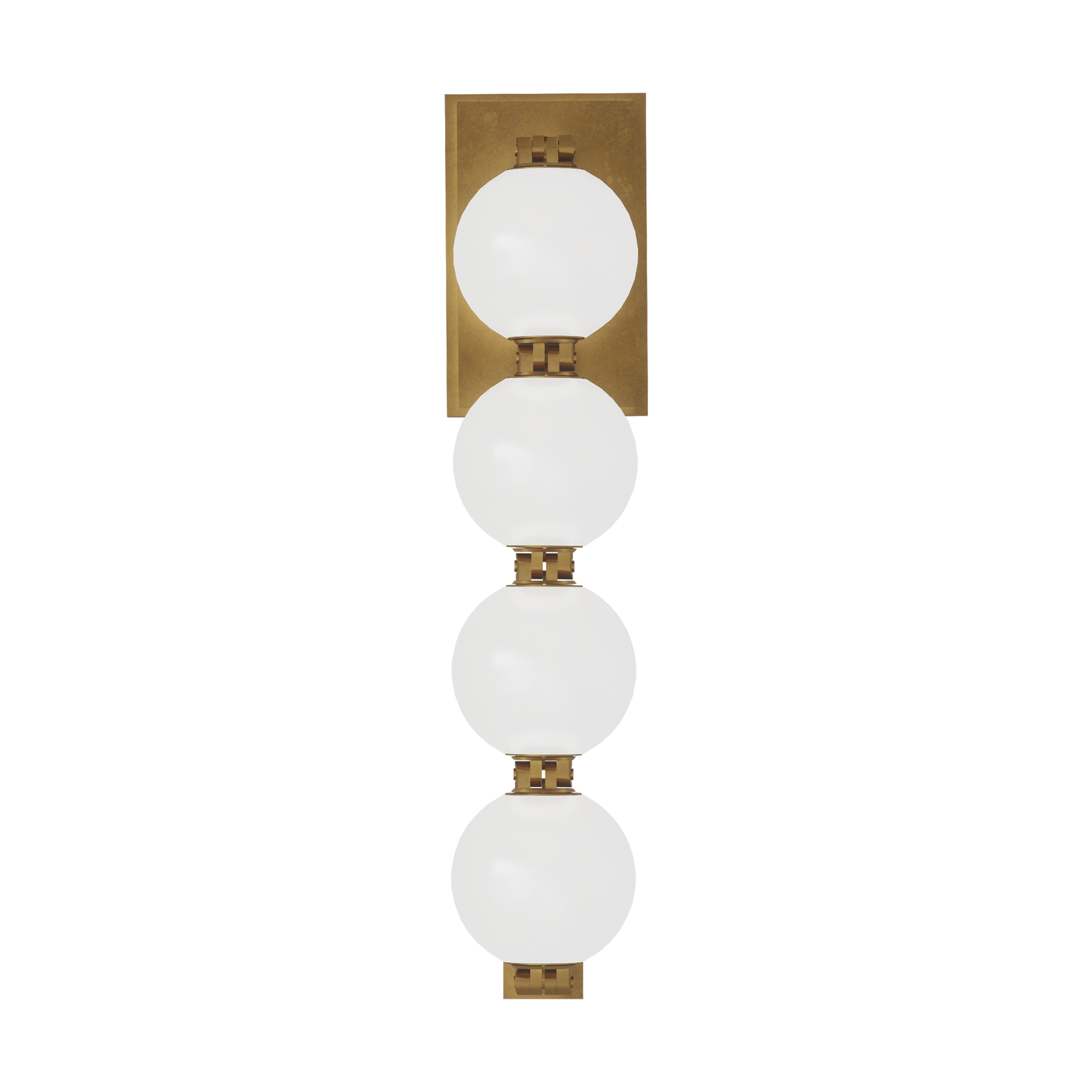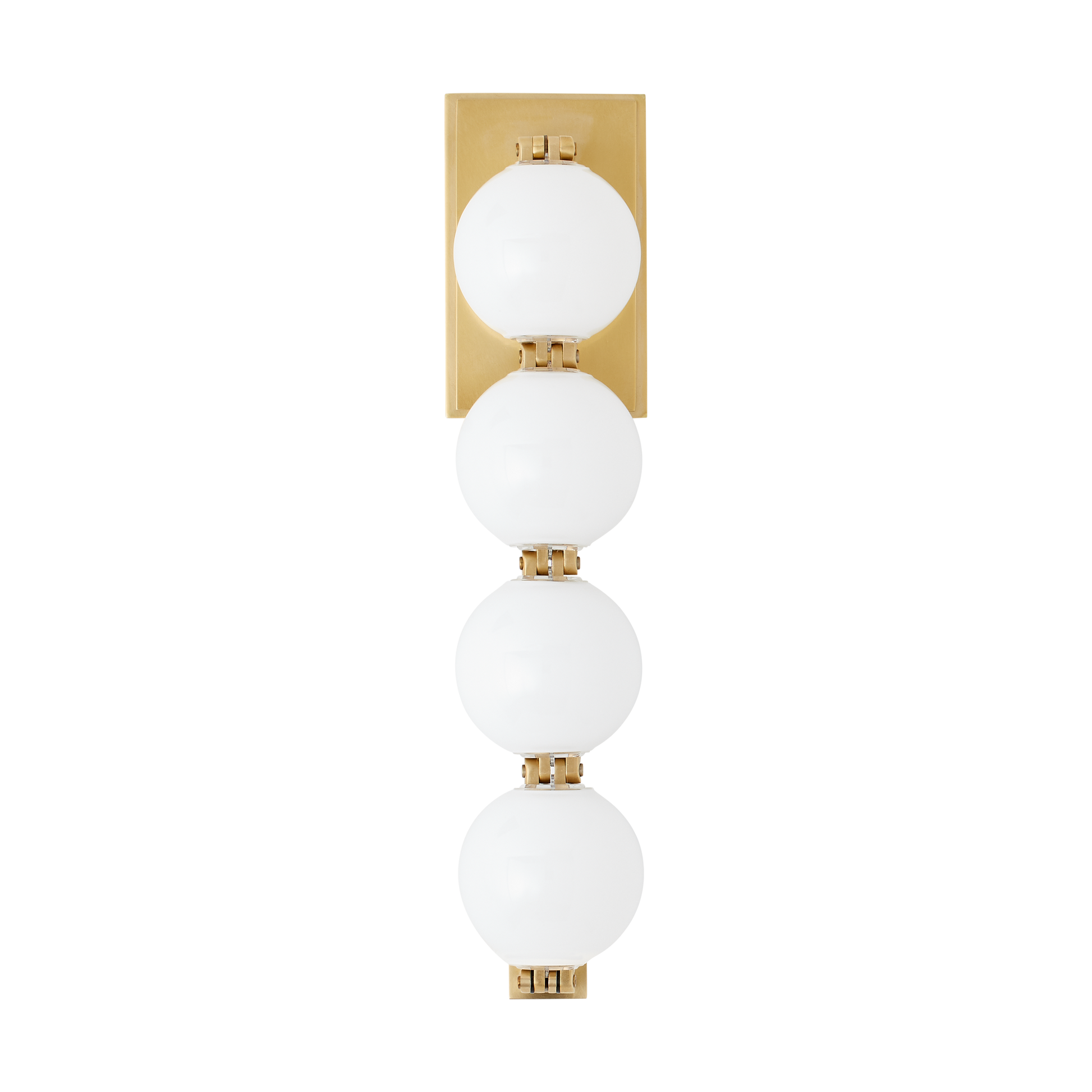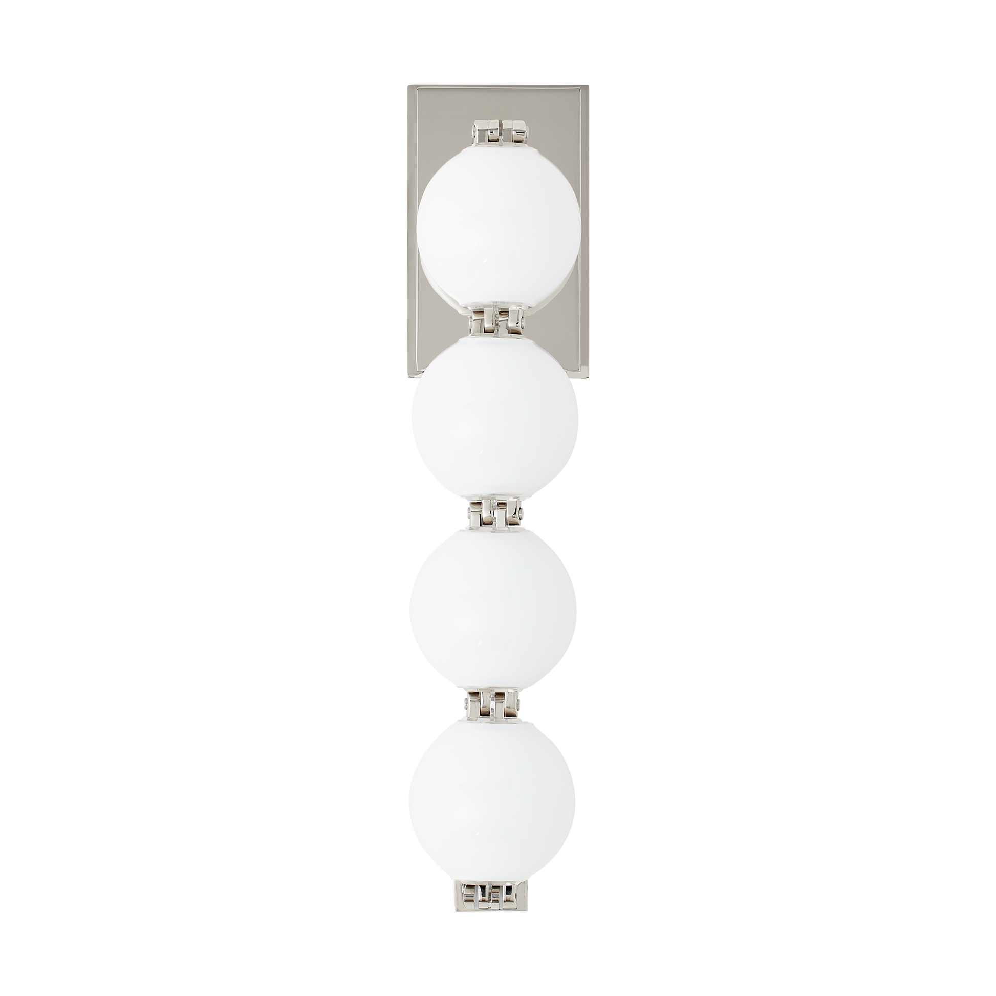 The Perle by Sean Lavin is a stunning extension to the popular Collier Series, now offered in soft white glass to provide a different design presence in a room. Available in multiple-length strands for the ultimate customization. Perle can be hung straight down in pendant form or draped from two mounting points for a striking chandelier utilizing the surface canopy or more minimal remote driver canopy. Interweave individual stands to create incredible light sculptures with stunning illumination. The natural brass connectors are custom engineered to support the glass and add additional beauty to the piece. Available with remote or surface-mounted driver options. Predetermined length options allow easy ordering with virtually unlimited versatility—contact the factory for custom configurations. Patent pending.