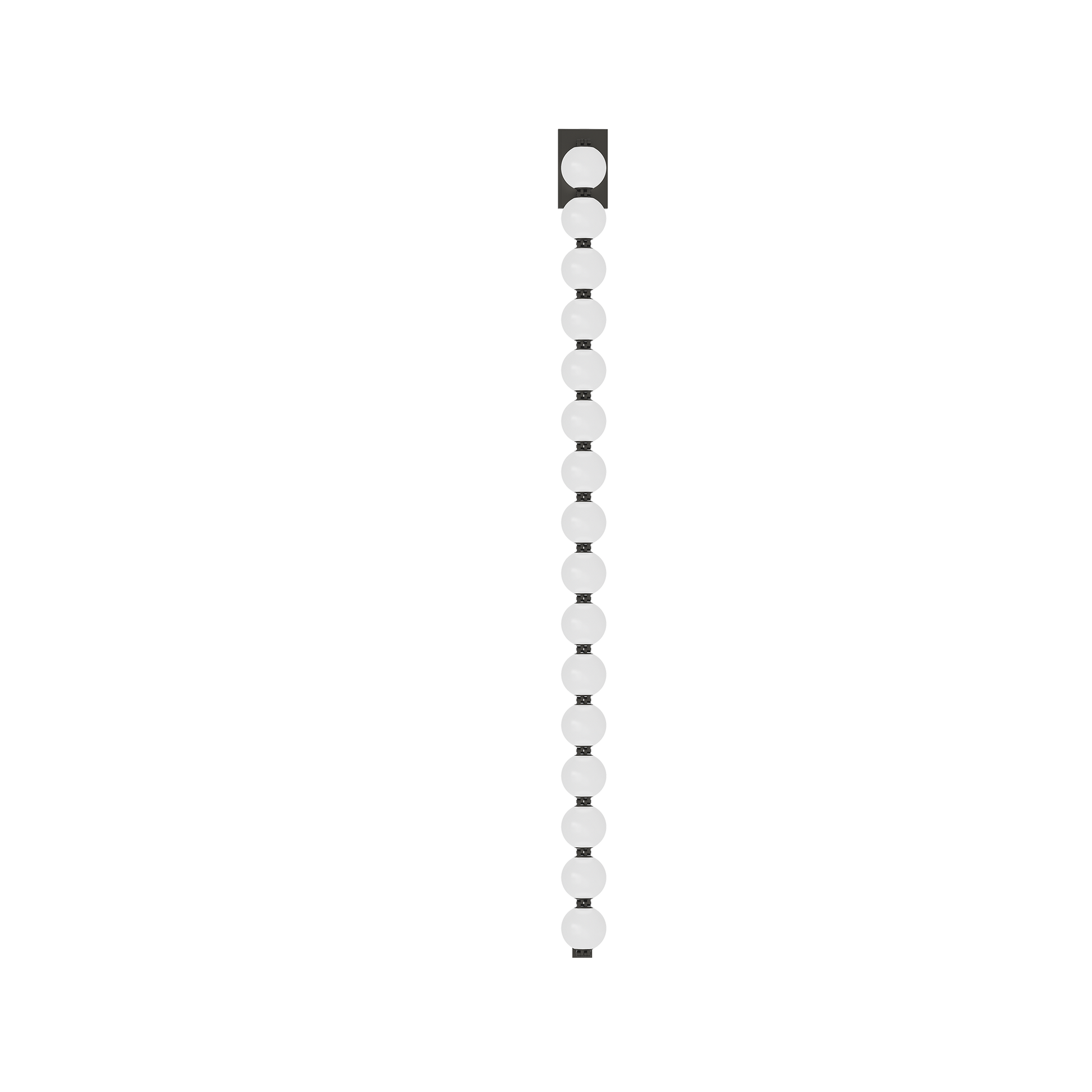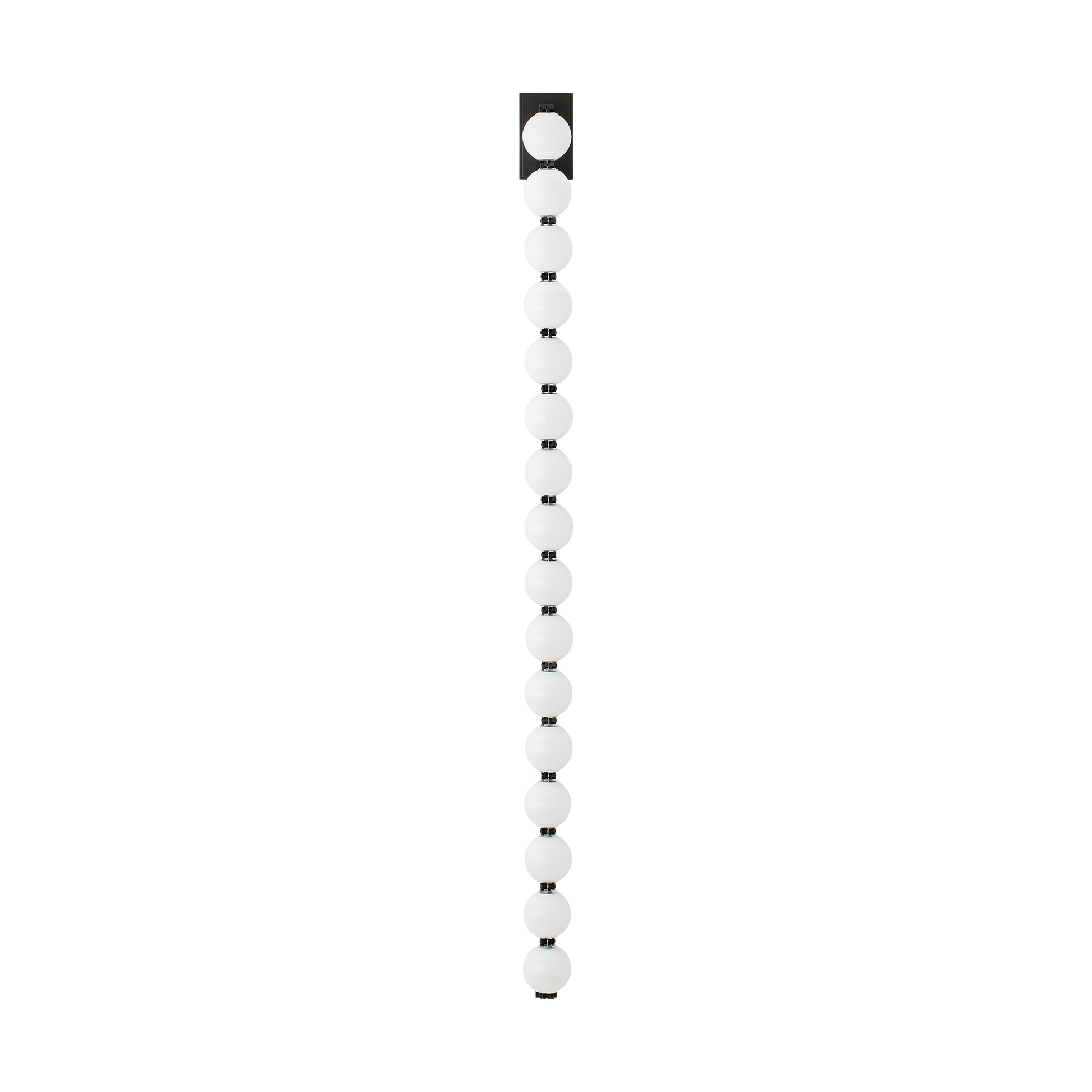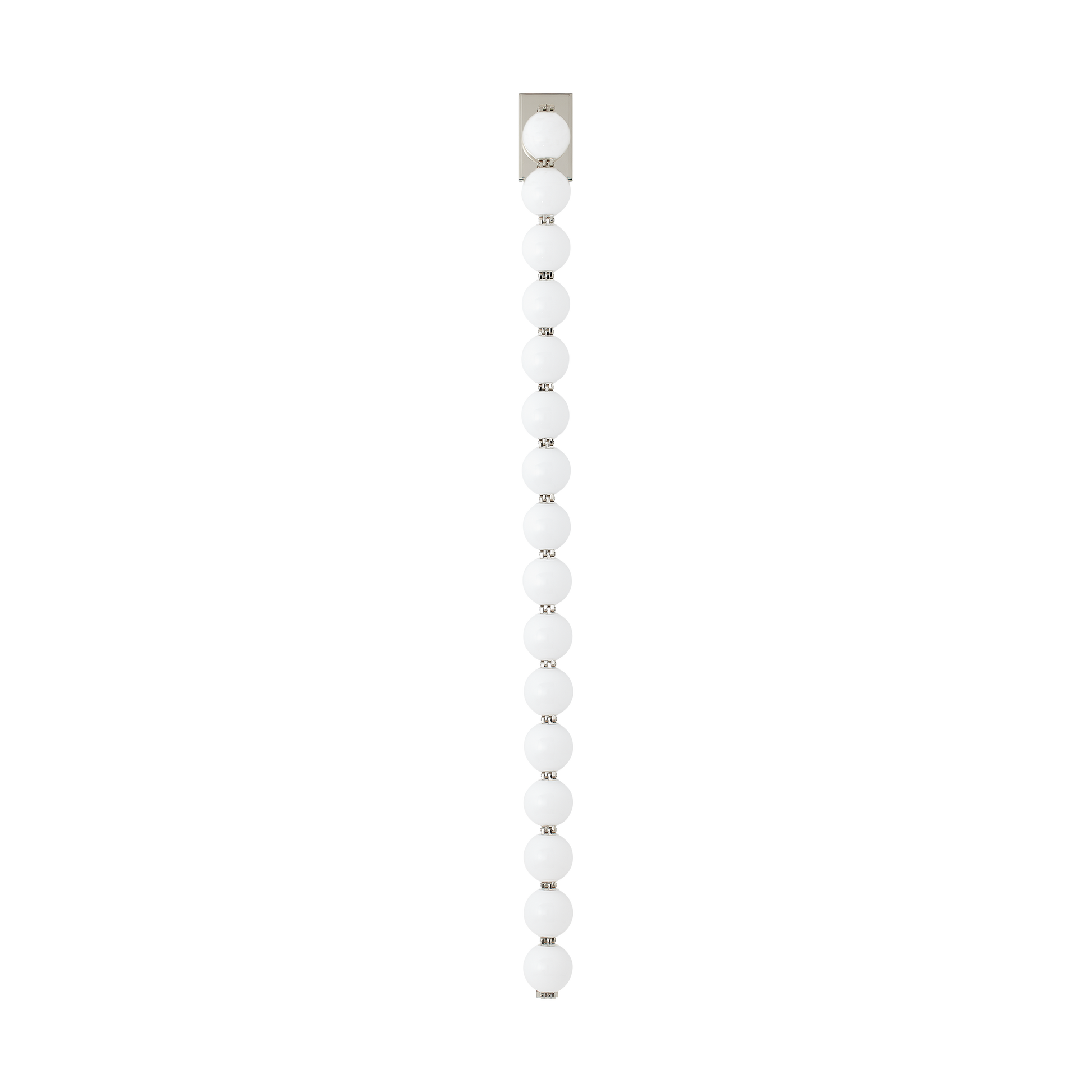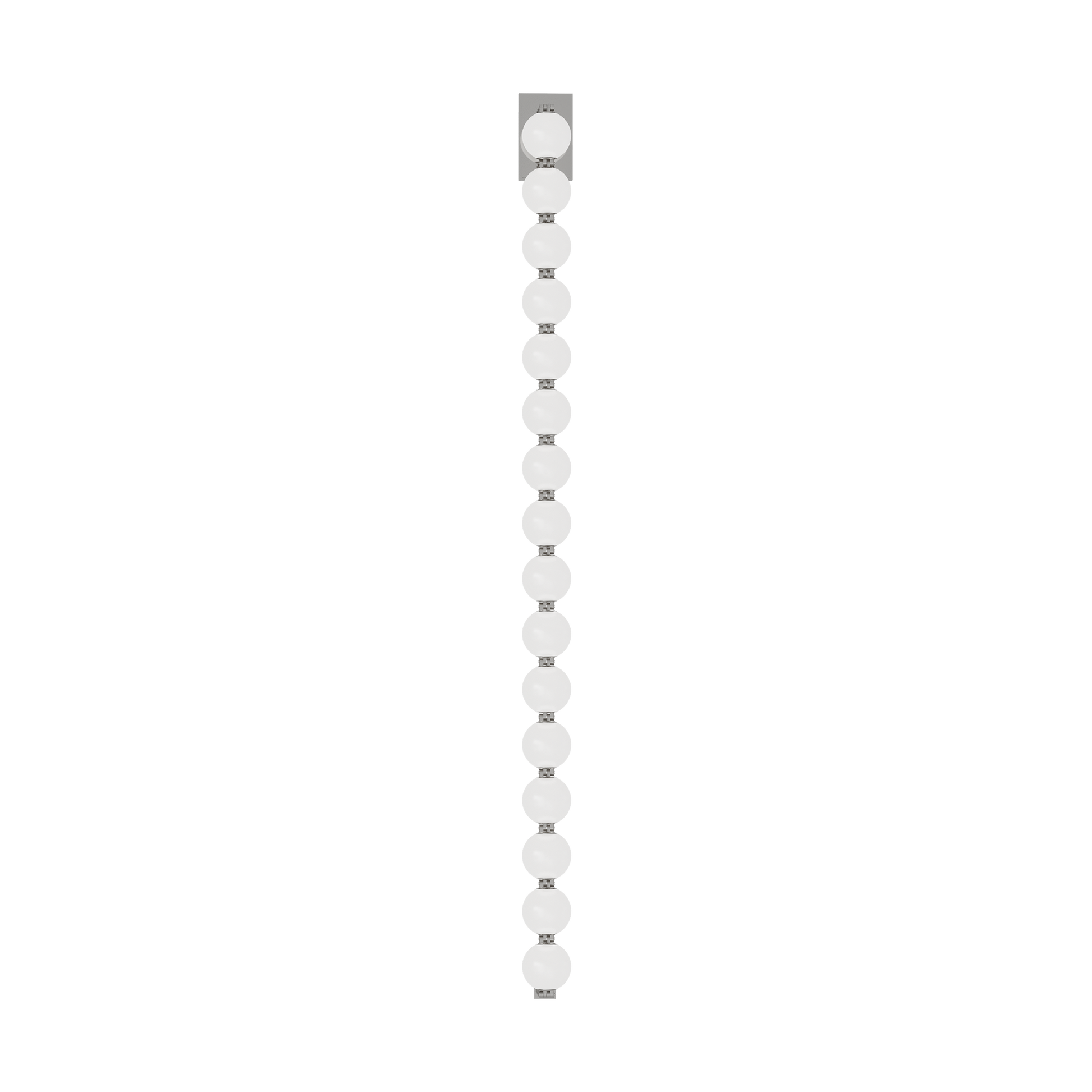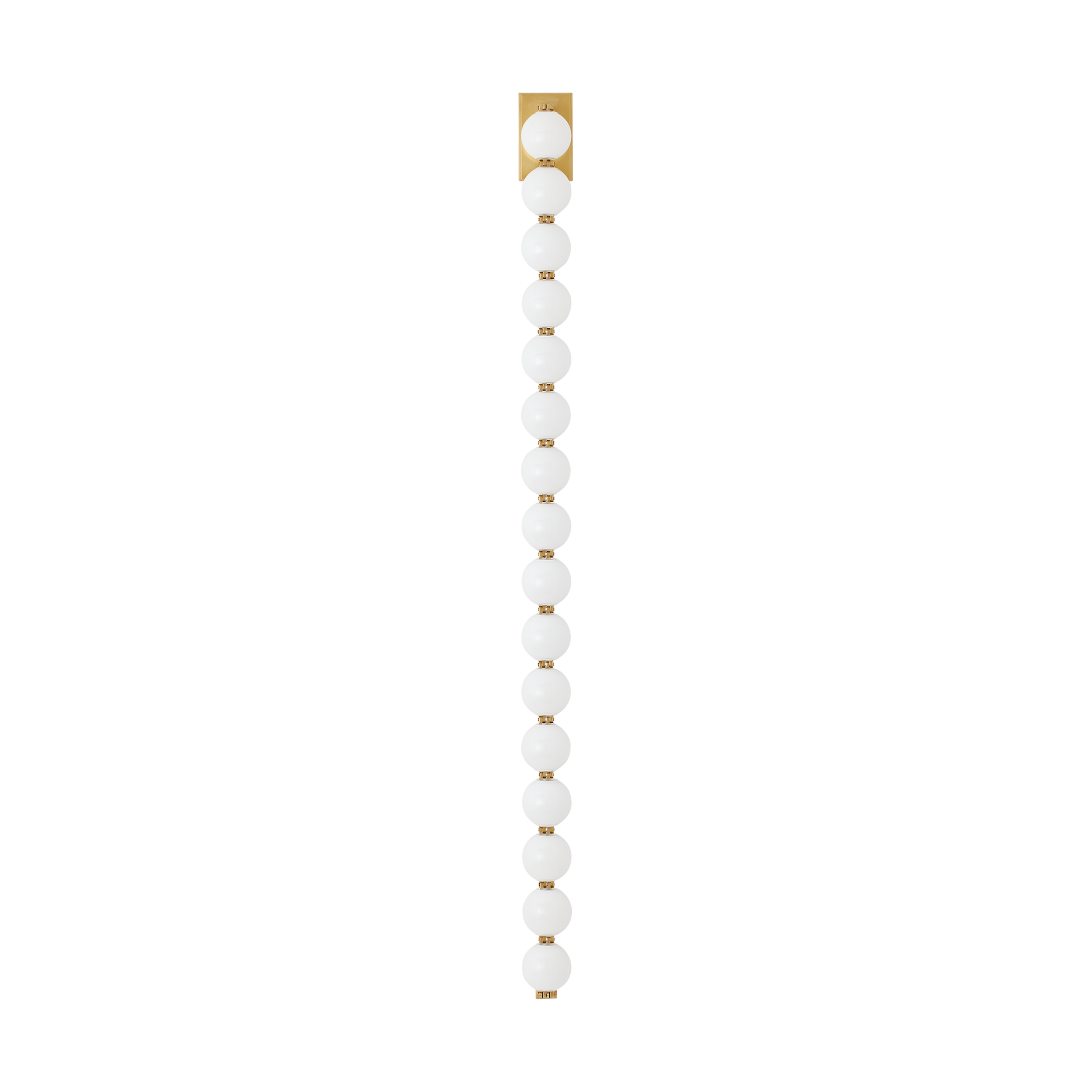 The Perle by Sean Lavin is a stunning extension to the popular Collier Series, now offered in soft white glass to provide a different design presence in a room. Available in multiple-length strands for the ultimate customization. Perle can be hung straight down in pendant form or draped from two mounting points for a striking chandelier utilizing the surface canopy or more minimal remote driver canopy. Interweave individual stands to create incredible light sculptures with stunning illumination. The natural brass connectors are custom engineered to support the glass and add additional beauty to the piece. Available with remote or surface-mounted driver options. Predetermined length options allow easy ordering with virtually unlimited versatility—contact the factory for custom configurations. Patent pending.