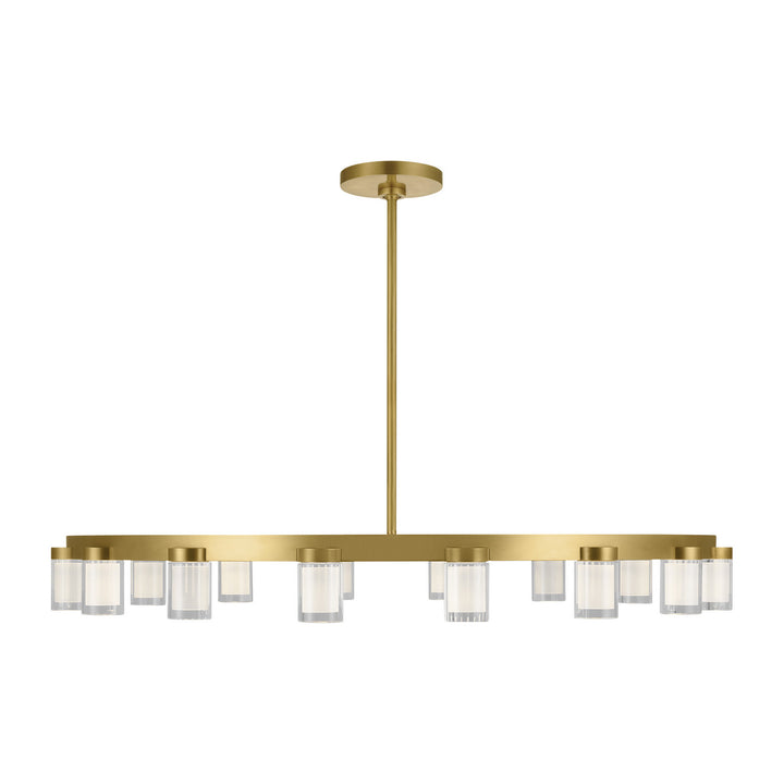 The Esfera Medium Chandelier by Kelly Wearstler for Tech Lighting realizes the beauty of elemental materials and spatial symmetries. In an elevated exchange of visual textures and clarity of form, the transitional design of this piece is a modern portrait of the convergence of cylindrical multi-dimensional prisms as integral sources of light with simple, linear metal detailing in varied geometric gestures as the connecting base.