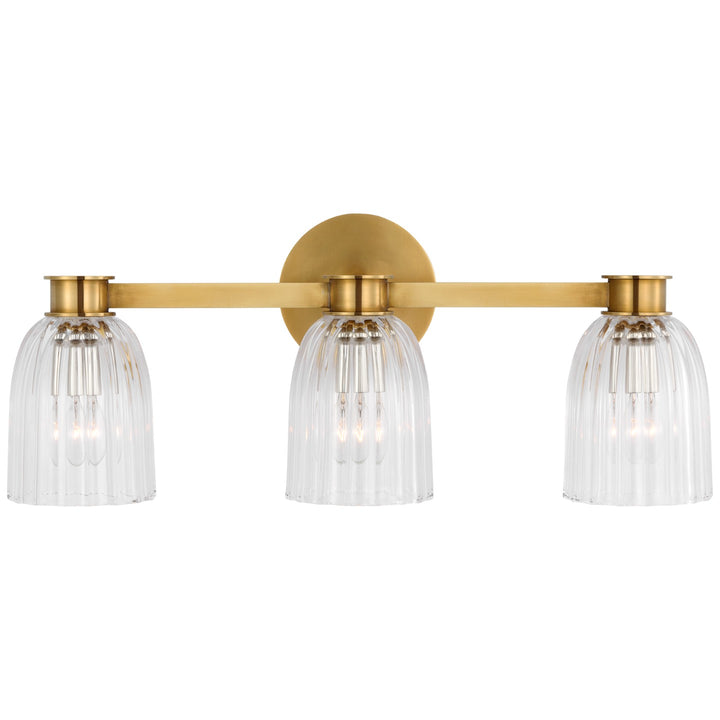 Asalea Triple Vanity Light in Hand-Rubbed Antique Brass w/ Clear Glass